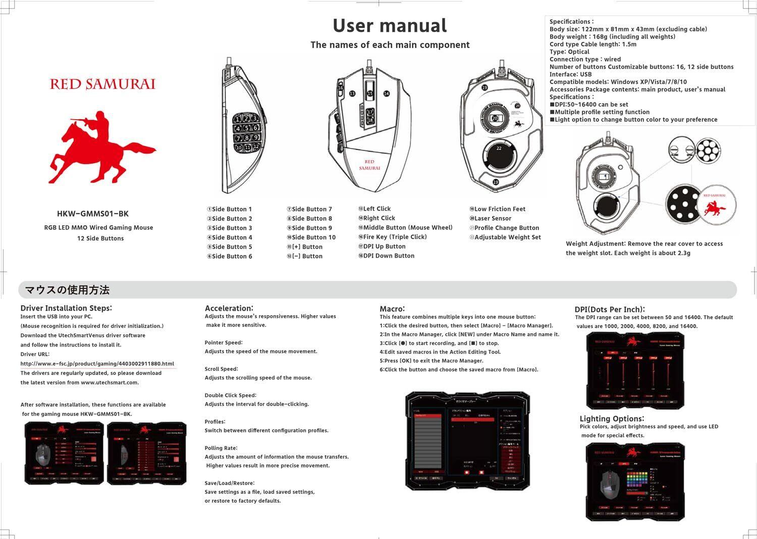 RED SAMURAI ゲーミングマウス 有線 マウス 16400dpi 1000Hz 18個 プログラムボタン サイドボタン ウエイト調整 安定のグリップ バックライト カスタマイズ プログラム MMO/FPS/MOBA ゲームマウス (ブラック)