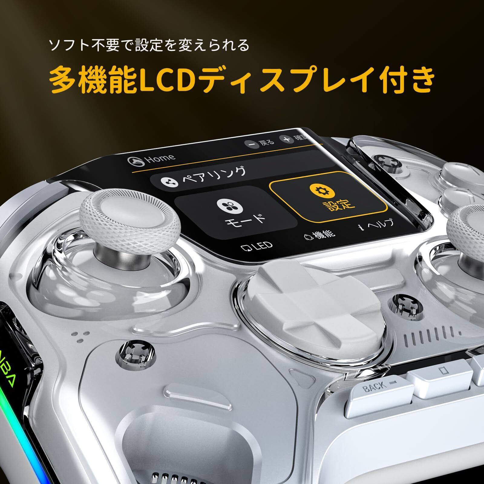 ManbaOne V2 PC コントローラー 多機能LCDディスプレイ付き Switch2 コントローラー ドリフト防止ホールスティック ホールトリガー 連射機能プロコン PC/Switch2/Android/iOS対応 ゲームパッド 1800mAh大容量バッテリー 4つ背面ボタン 有線/無線接続可能 (白い)