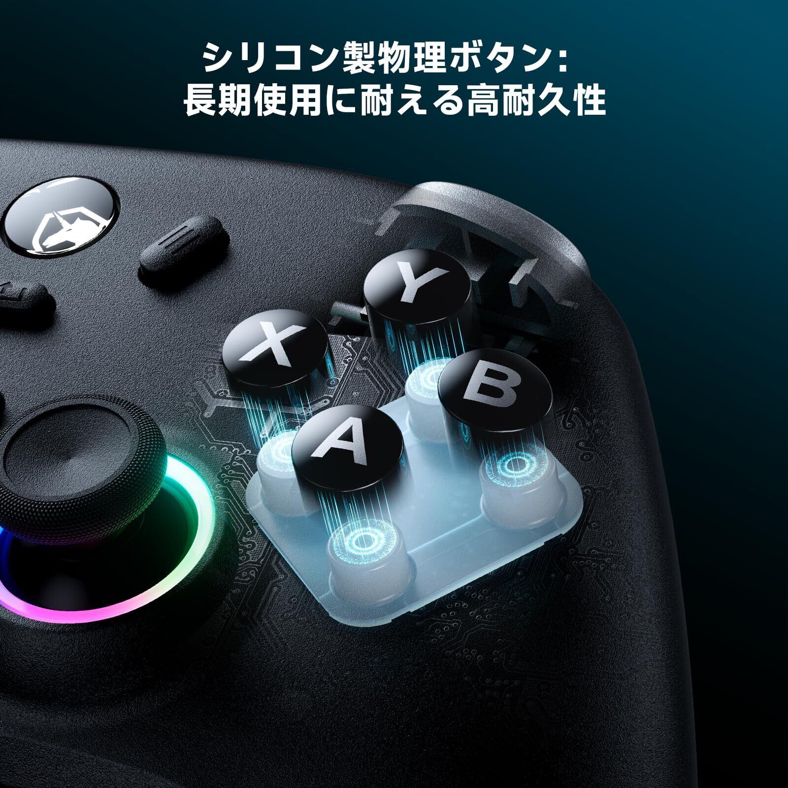 ECHTPower PC コントローラー 充電ドック付き 無線/有線接続 2.4Gレシバー付き ホール効果スティック RGBライト 1000Hz ポーリングレート TURBO連射 振動調整 800mAhバッテリー PC/Steam/Switch/Android/iOSに対応 ブラック