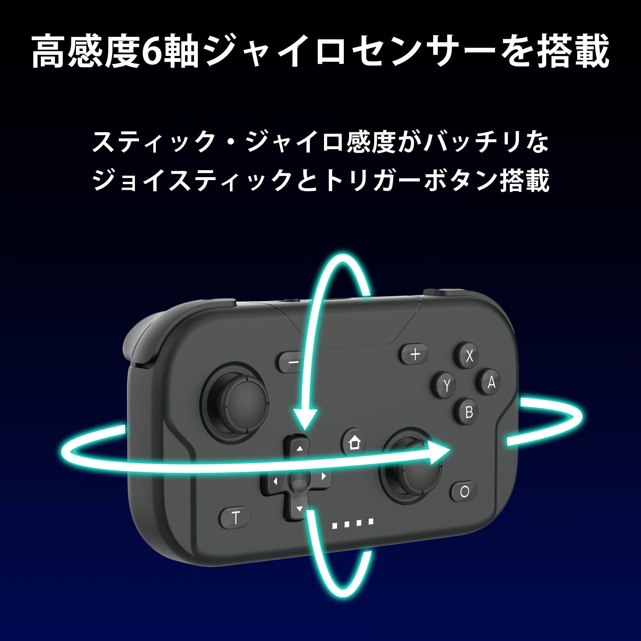 【6軸ジャイロセンサーつき】直感操作で、思いのままに。6軸ジャイロセンサー搭載で繊細な動きも正確に。 高感度スティック&トリガーボタンで、あらゆるジャンルのゲームが快適に楽しめます。」