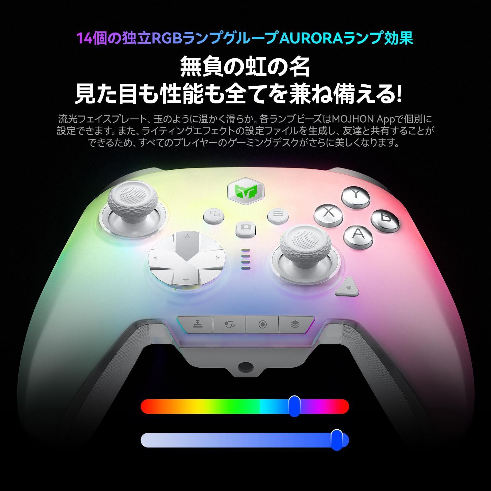 BIGBIG WON Rainbow 3 ワイヤレスコントローラー 静電容量式ジョイスティック 2000Hzポーリングレート 有線/無線接続 16個の微動機械ボタン 14個のカスタムRGBライト 6軸ジャイロセンサー 切り替え可能なホール効果/微動トリガー 3.5mmオーディオ PC/Switch2/iOS/Androidに対応 ゲームパッド