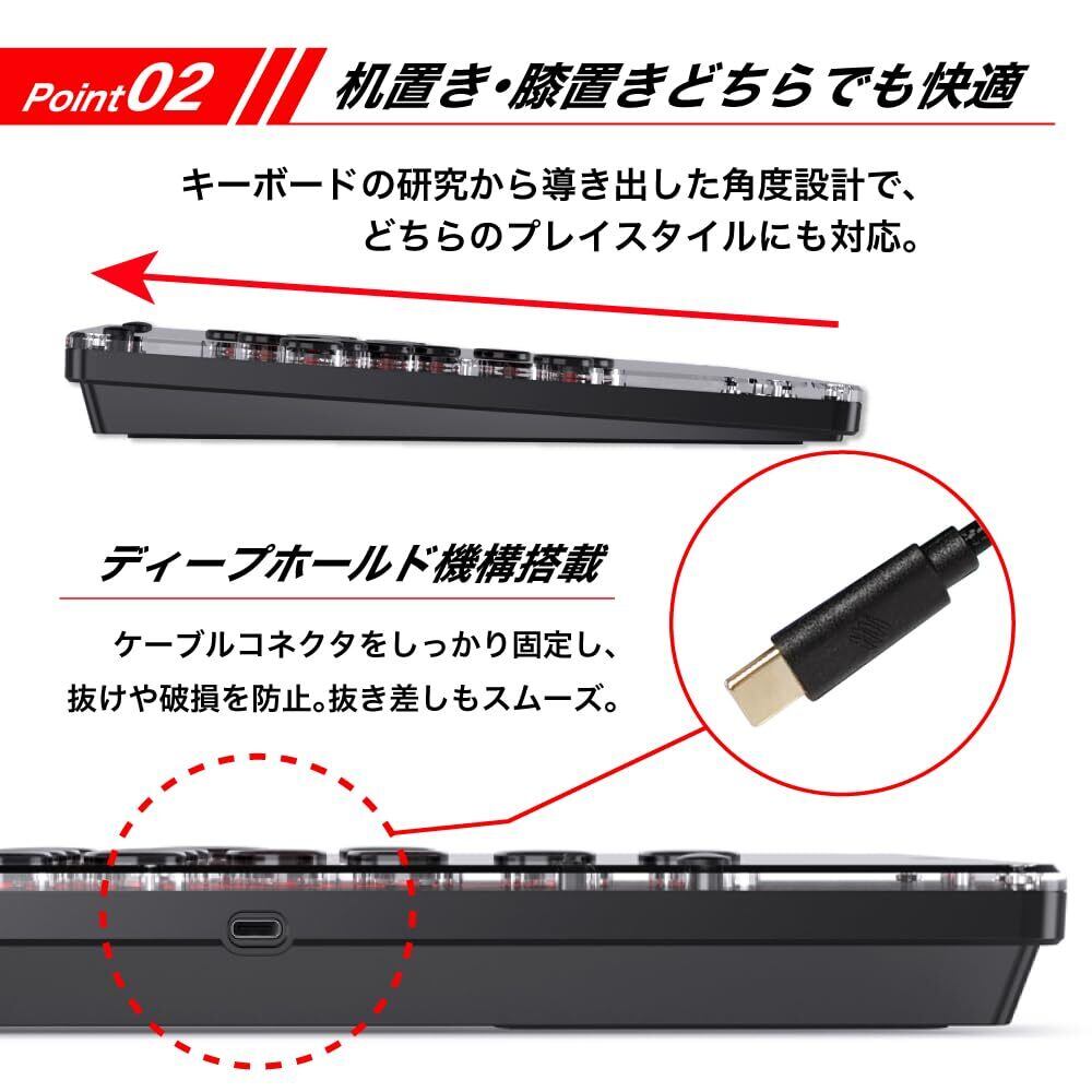 ■ Kailh Choc V2ベースの専用設計ボタン 2mmのショートストロークにより、瞬時の入力が可能。スライド入力も滑らかで、精密な操作やコンボ入力を求めるプレイヤーに最適です。 反応速度と操作の一体感を高次元で実現。