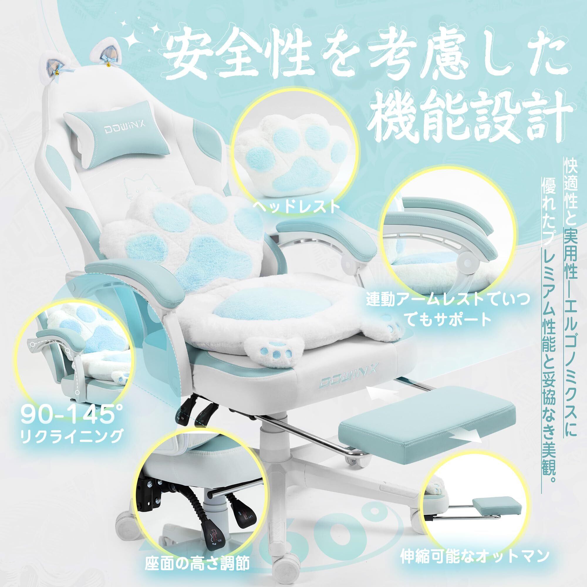 「Dowinx ゲーミングチェア」は、愛らしい猫耳デザインと肉球クッションが特長で、ゲームや仕事を楽しく快適にサポートする理想のチェアです!猫好きにはたまらない、かわいらしい見た目だけでなく、幅広な座面と通気性の良い素材が、長時間の利用でもストレスフリーな座り心地を提供します。