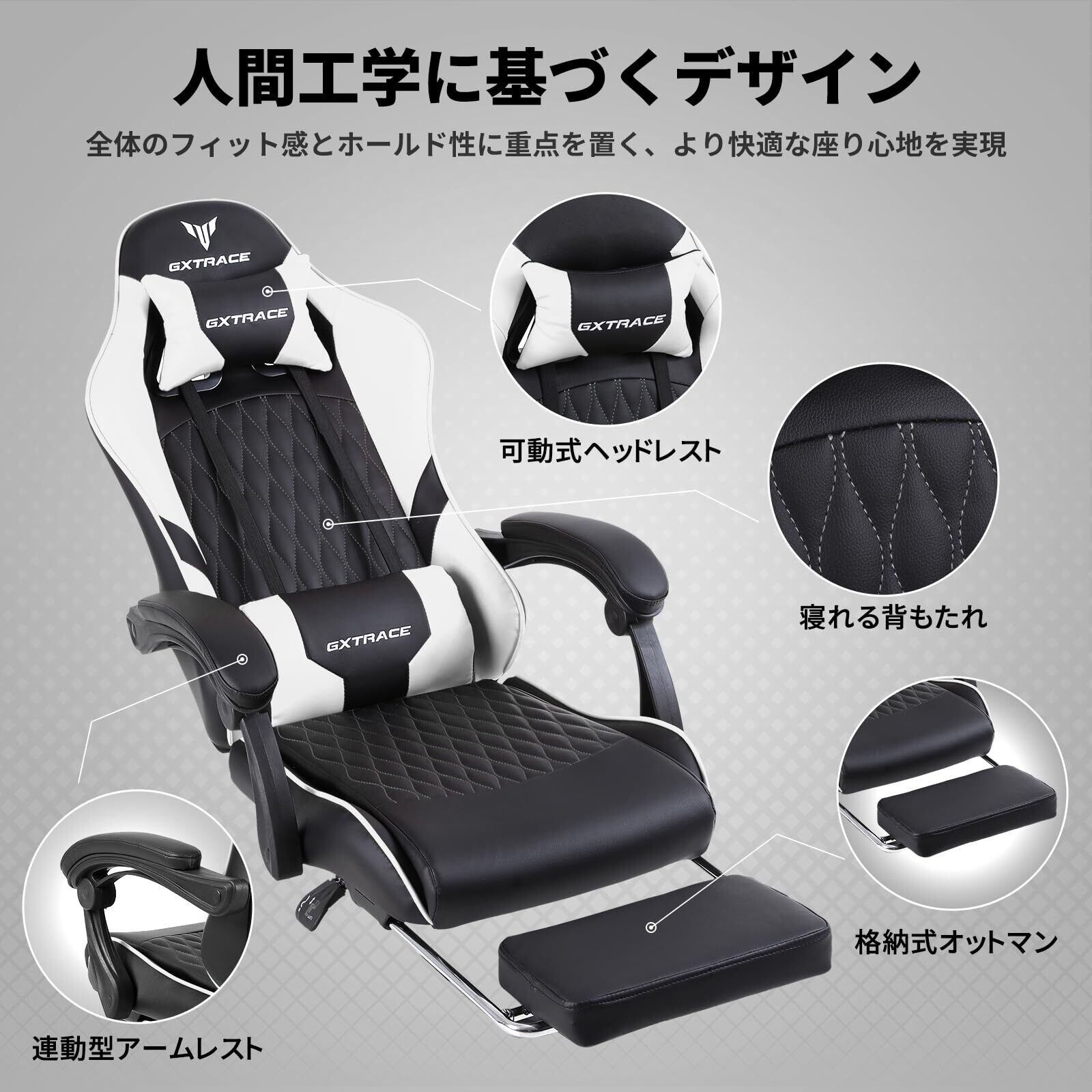 GXTRACE ゲーミングチェア ゲームチェア 白 連動アームレスト オフィスチェア デスクチェア パソコンチェア 椅子 オットマン リクライニング