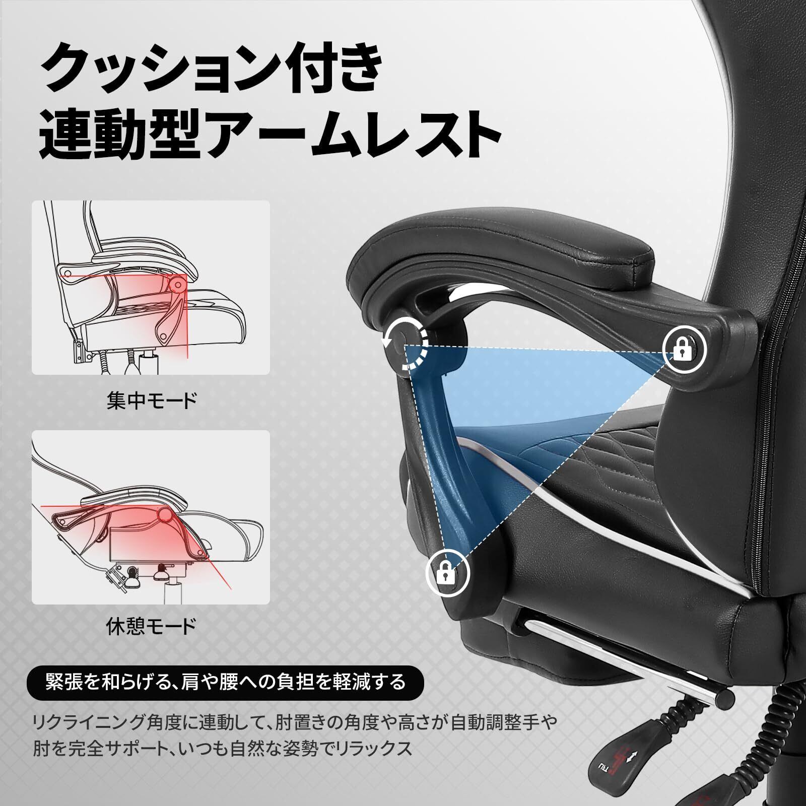 このチェアはリクライニング機能を搭載しており、自分の理想的な姿勢を調整できます。長時間のゲームプレイやテレワークでも、快適な姿勢をキープでき、疲れにくさを実現します。