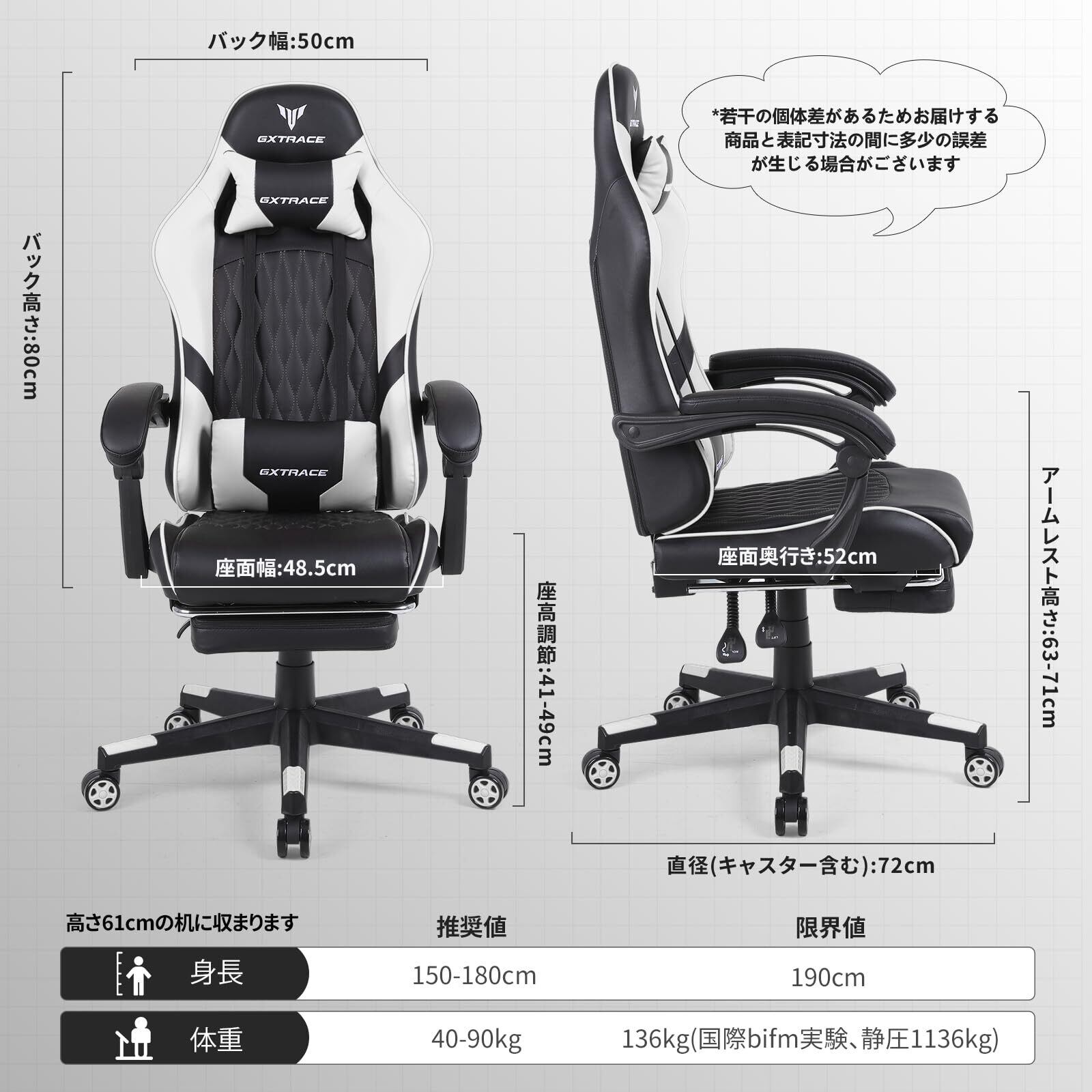 「GXTRACE ゲーミングチェア」は、ゲームを愛するあなたに贈る快適な座椅子です!見た目が美しいホワイトデザインは、どんなインテリアにもマッチし、ゲーム環境を一層引き立てます。