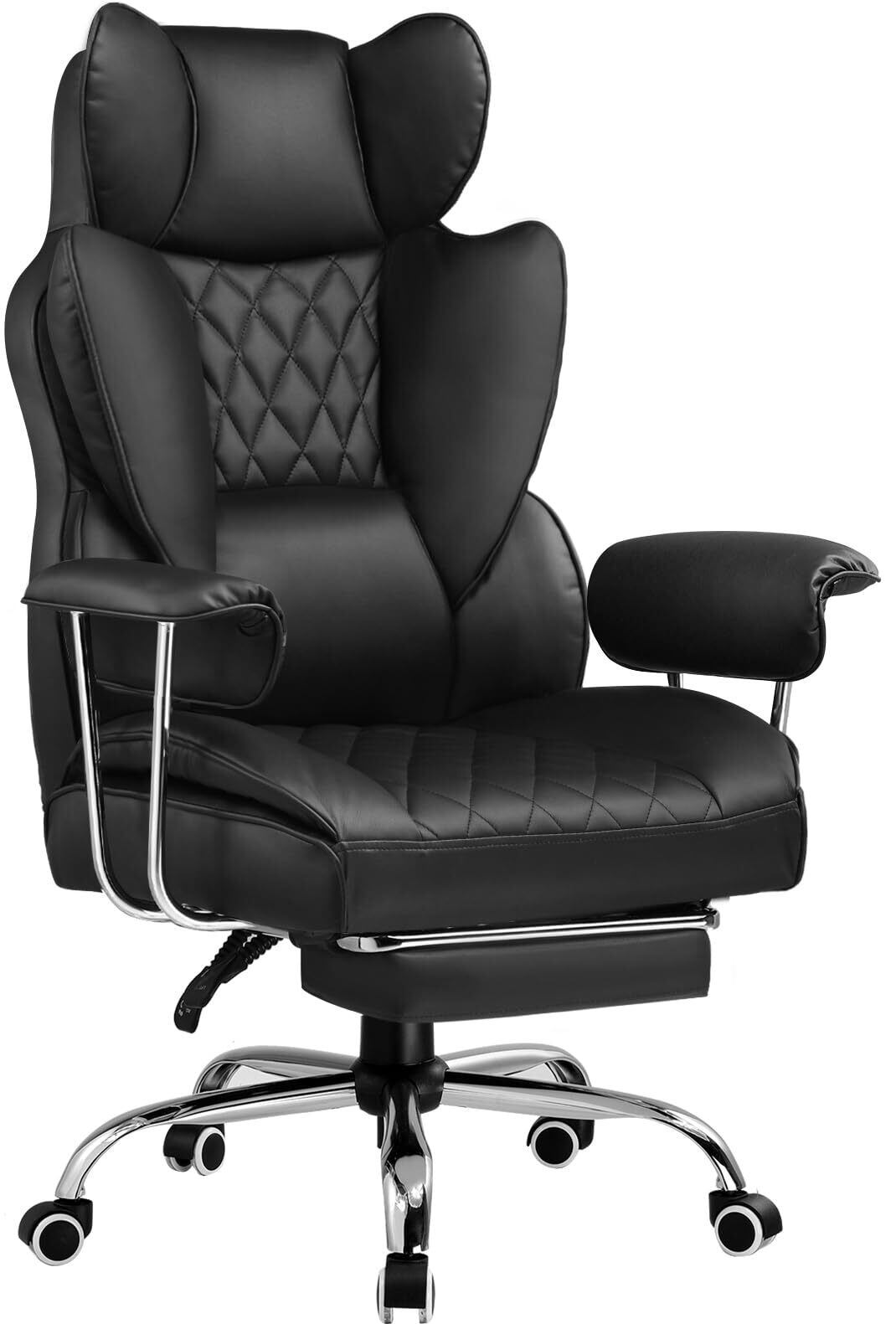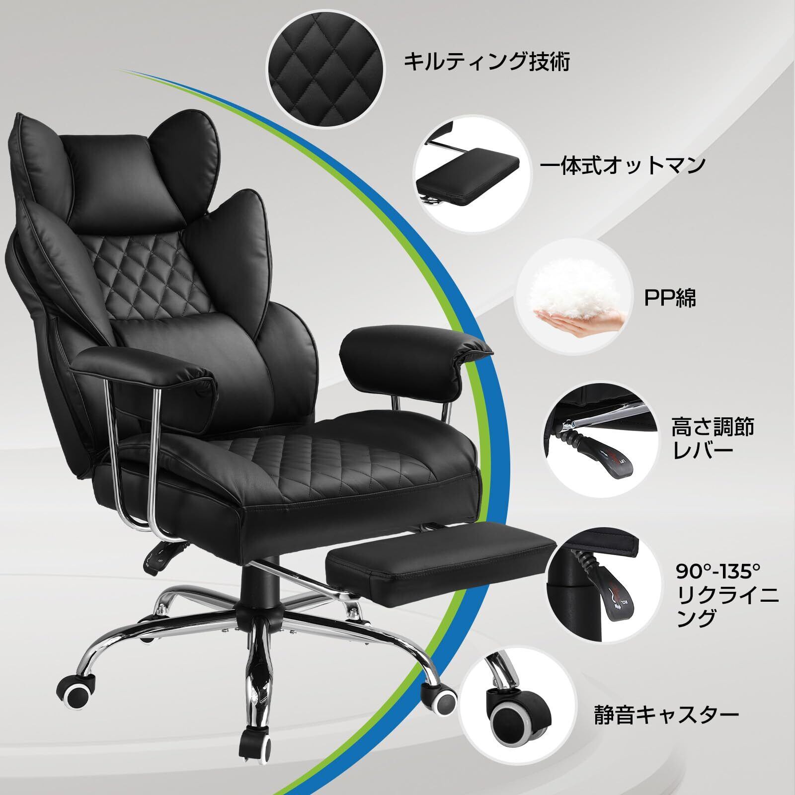 GTRacing ゲーミングチェア デスクチェア オフィスチェア 上質なPUレザー オットマン 椅子 イス テレワーク 腰痛対策 pcチェア 蒸れない ソファーの座り心地 【キルティング技術】【ふわふわPP綿採用】 【安心の非再生ウレタン採用】【ポケットコイル採用】 分区サポート 肉厚クッション リクライニング 広い座面 ハイバック 高さ調節 GT205-BLK