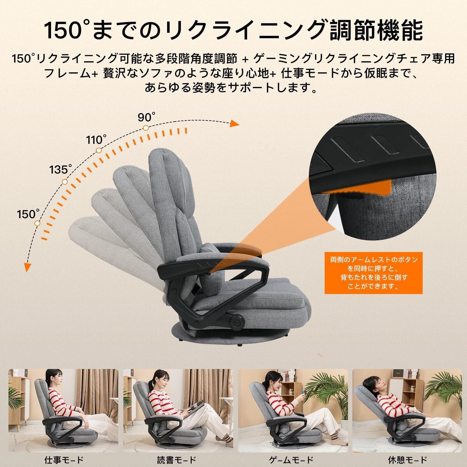 このチェアは、360°自由に回転できるため、スムーズに動きながら作業やゲームを進められます。背もたれは最大150°までリクライニング可能で、リラックスしたい時にも最適。仕事と遊びを切り替えやすい環境が整っています。
