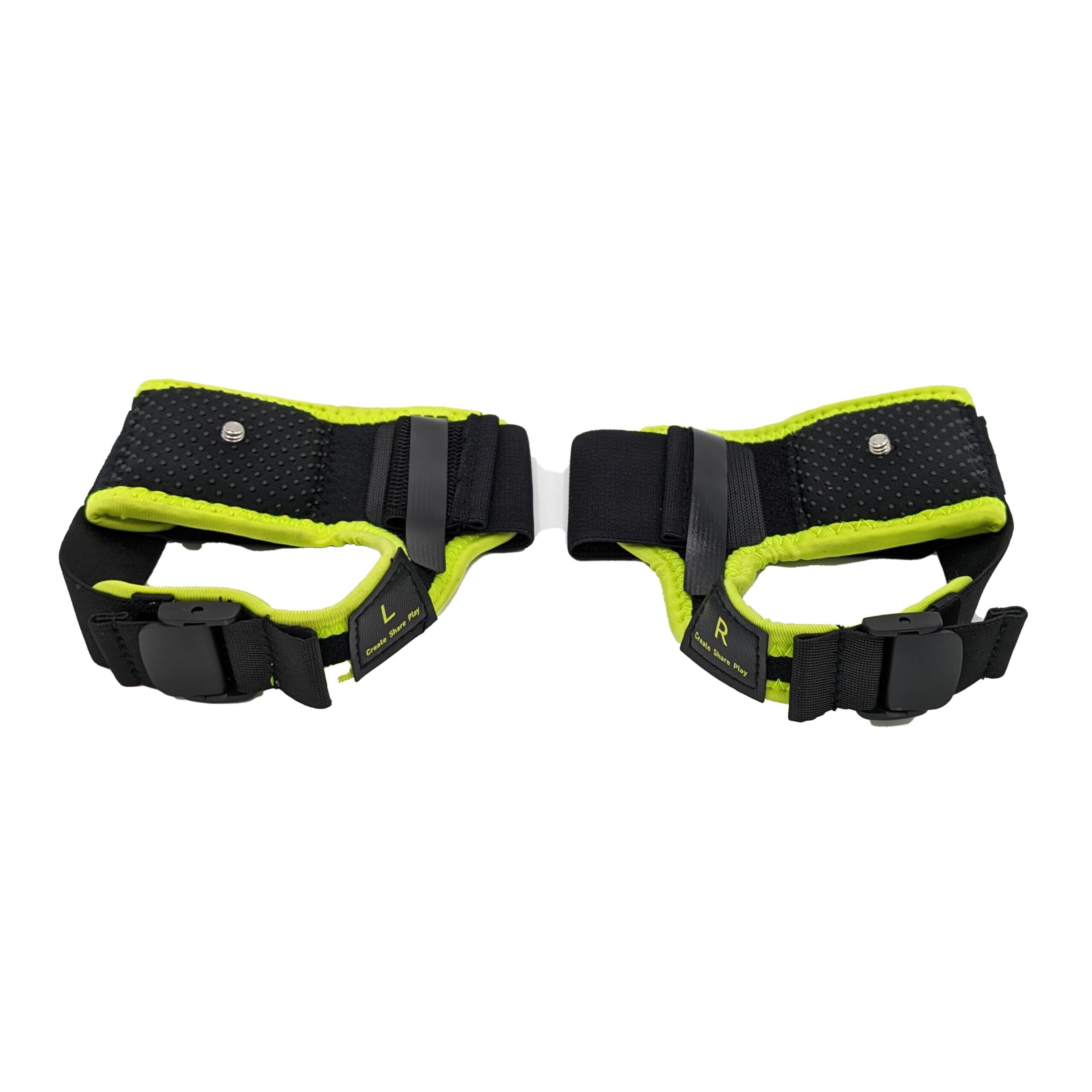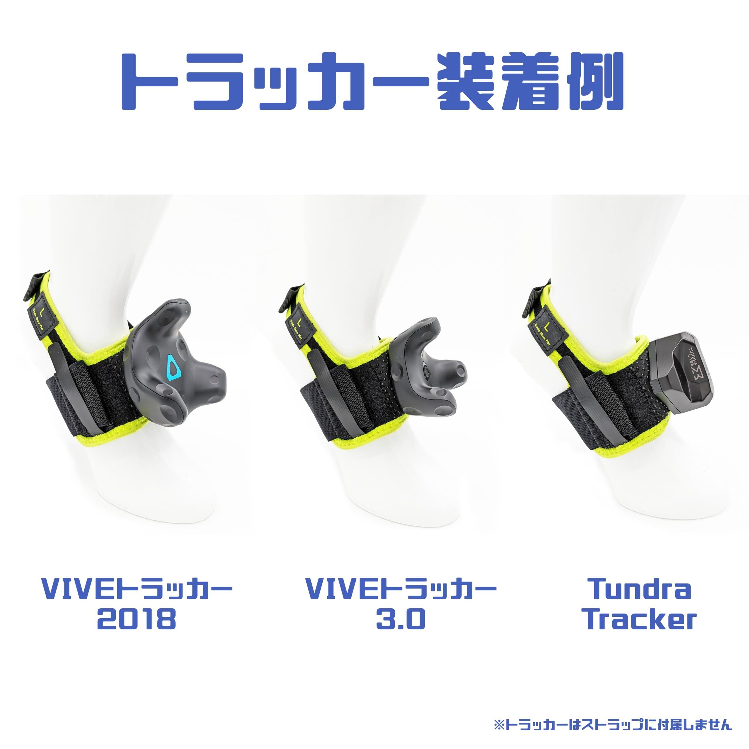 Tundra TrackerおよびVIVEトラッカーに対応した、VRトラッカー用の足ストラップ。トラッカー固定用の1/4インチネジがついています。かかと部分にもストラップがあるので、激しい動きをしてもストラップとトラッカーが足から抜けません。