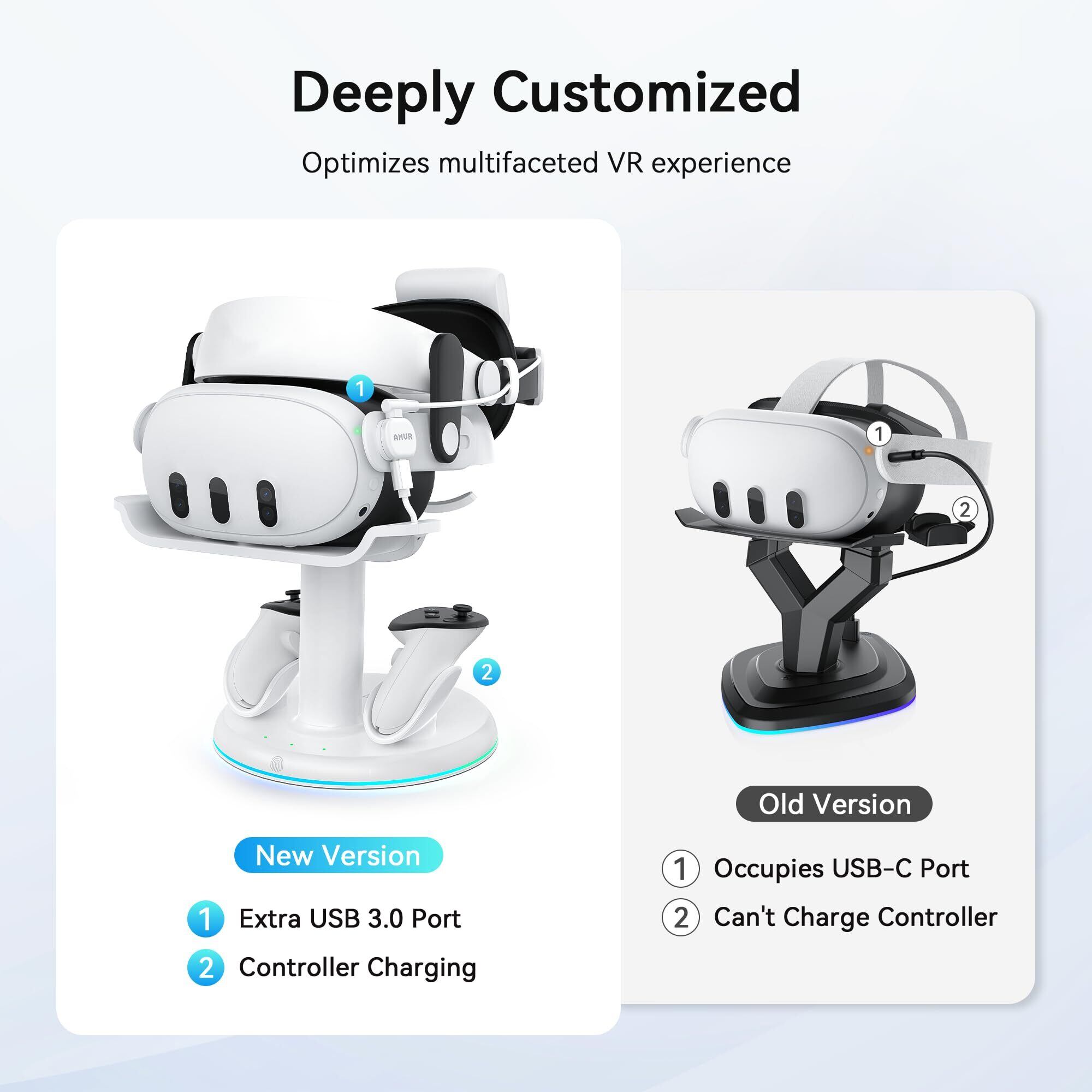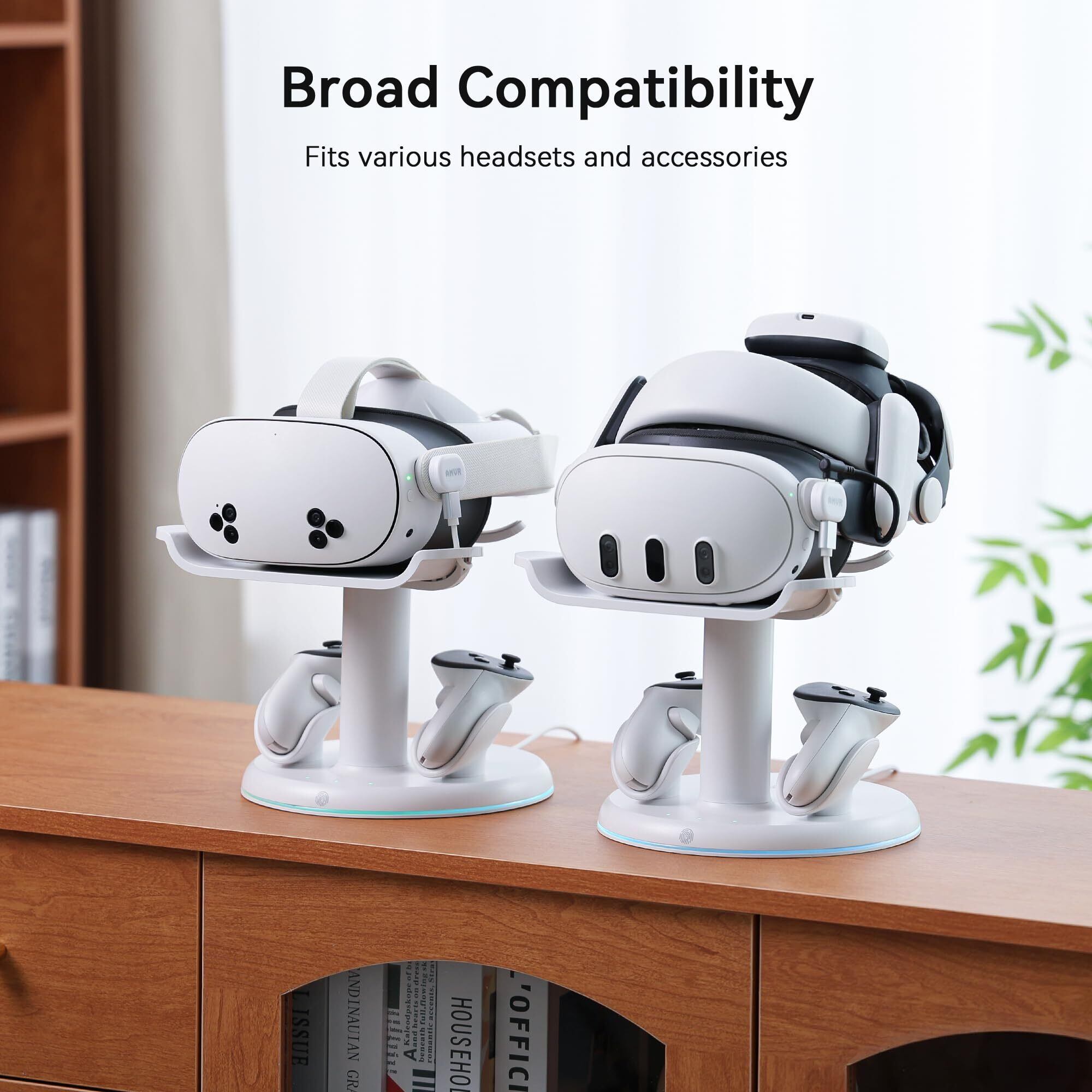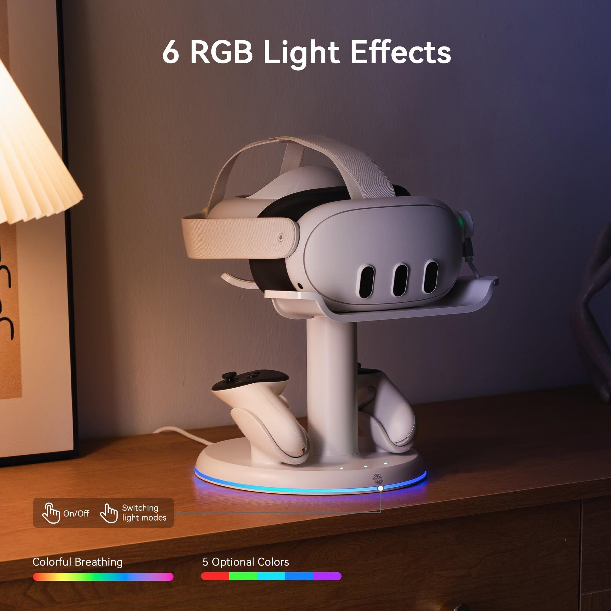 AMVR RGB 充電ドックMeta Quest 3/Quest 3Sに対応、磁気充電ステーションVRヘッドセットとコントローラー用充電スタンドアクセサリー