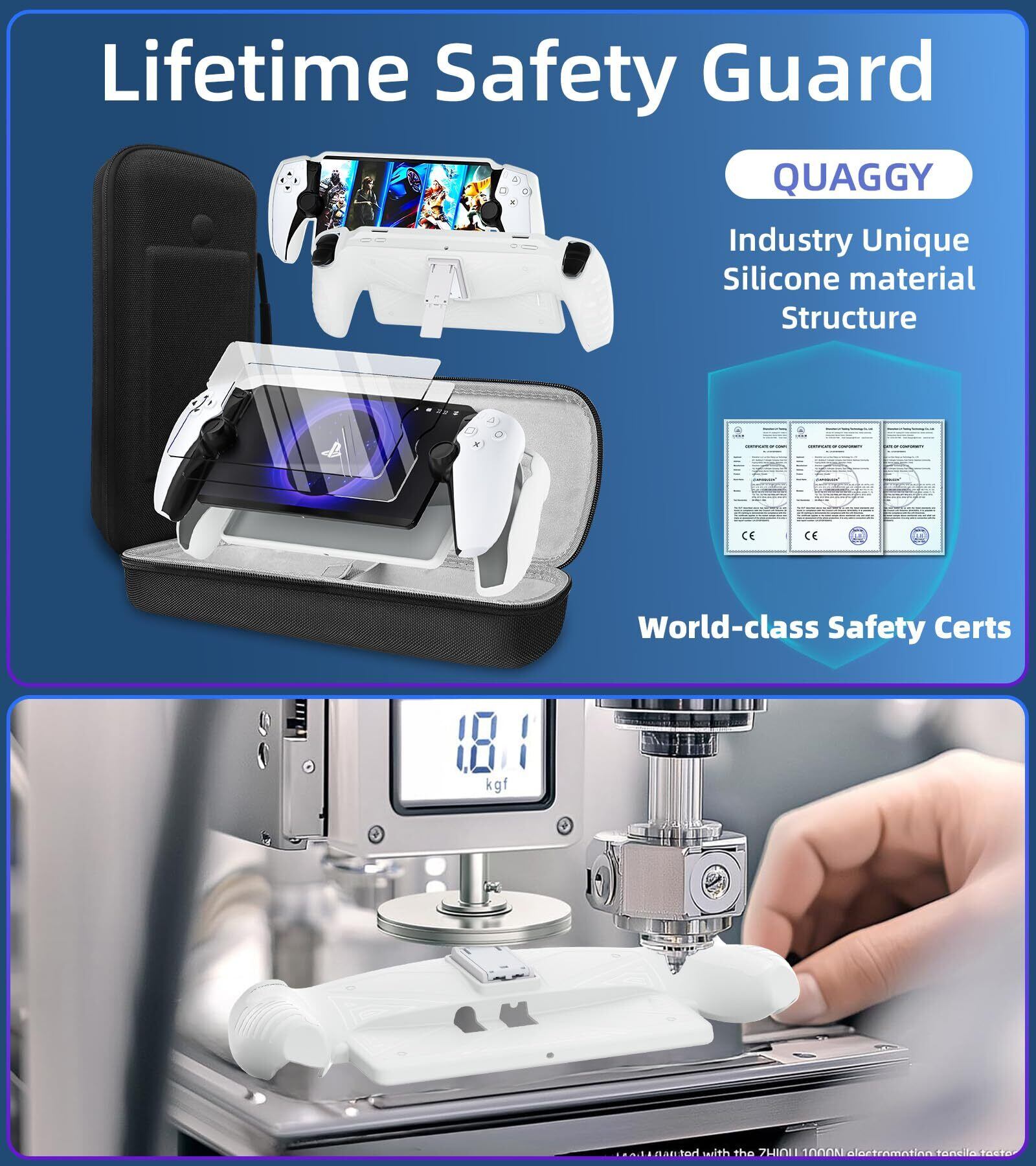 【 】柔らかいベルベットの裏地がPlayStation Portalコンソールを傷や損傷から守ります。ジョイスティックの位置を調整したデザインは、ジョイスティックを圧迫することなく保護します。ゲームに必要なものを傷から守ります。硬度9Hのガラススクリーンプロテクターは、99.9%の透明度で高解像度を実現し、最適で自然な視聴体験を実現します。タッチスクリーンの感度にも完全に対応しています。️QUAGGY PlayStation Portalリモートプレーヤー用アクセサリーキットには、ポータブルバッグ1個、キックスタンド付きソフトTPUカバー1個、強化フィルムスクリーンプロテクター2個、取り付け用クリーニングキット1個が含まれています。1回の購入でアクセサリーに関するあらゆる問題を解決できます。
