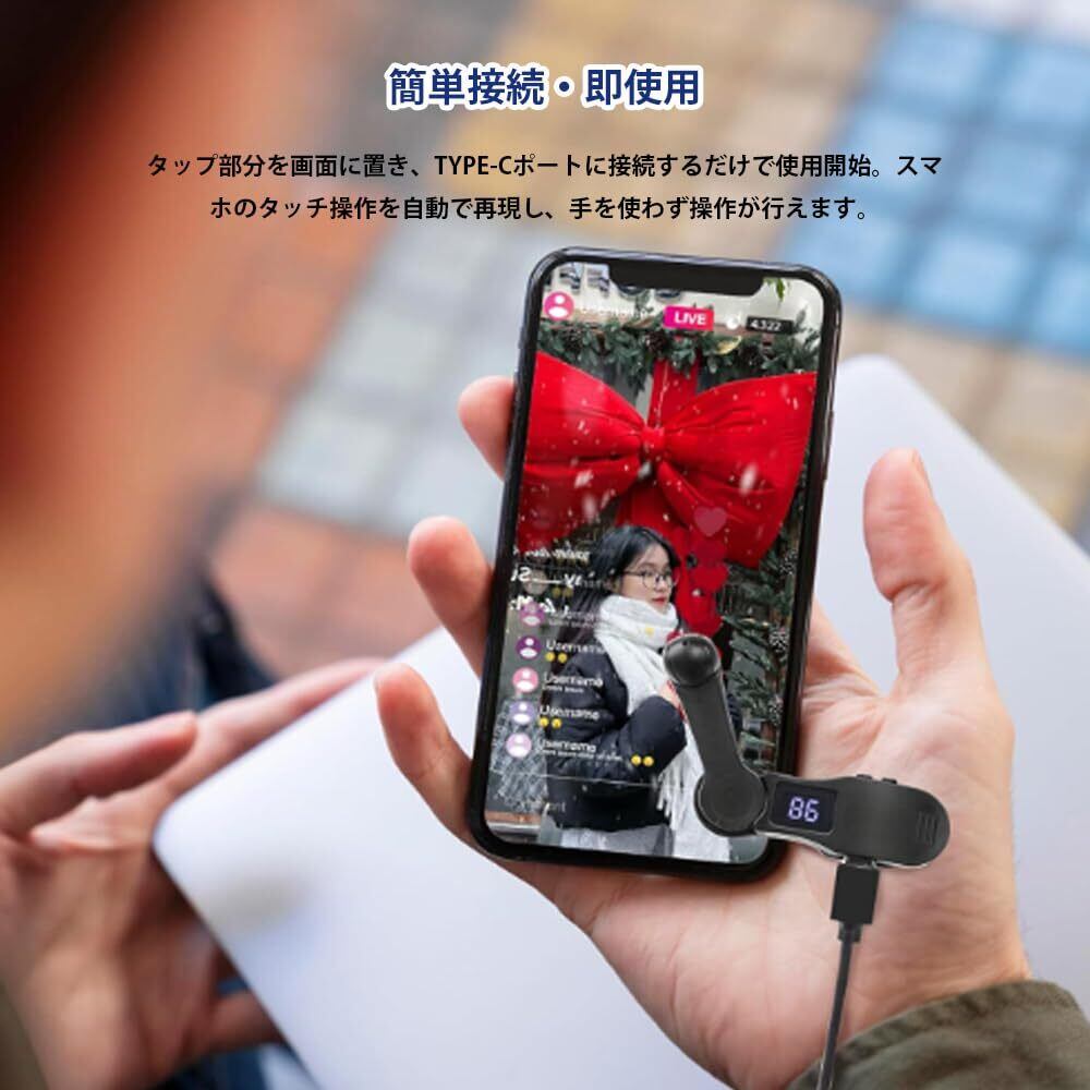 【簡単接続・即使用】タップ部分を画面に置き、TYPE-Cポートに接続するだけで使用開始。スマホのタッチ操作を自動で再現し、手を使わず操作が行えます。