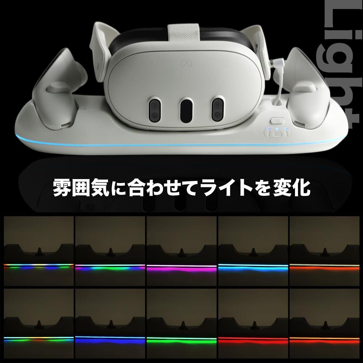 【Meta Quest 全シリーズ対応】マルチ VR充電スタンド メタクエスト 卓上 ドック アクセサリー (TypeC 急速充電 LEDライト付き)
