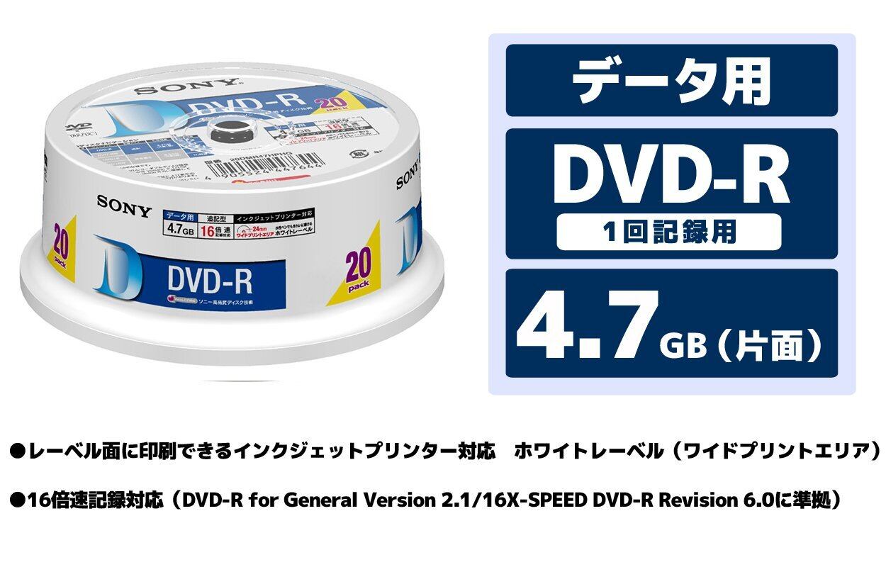 ソニー データ用DVD-R 16倍速 20枚パック 20DMR47HPHG