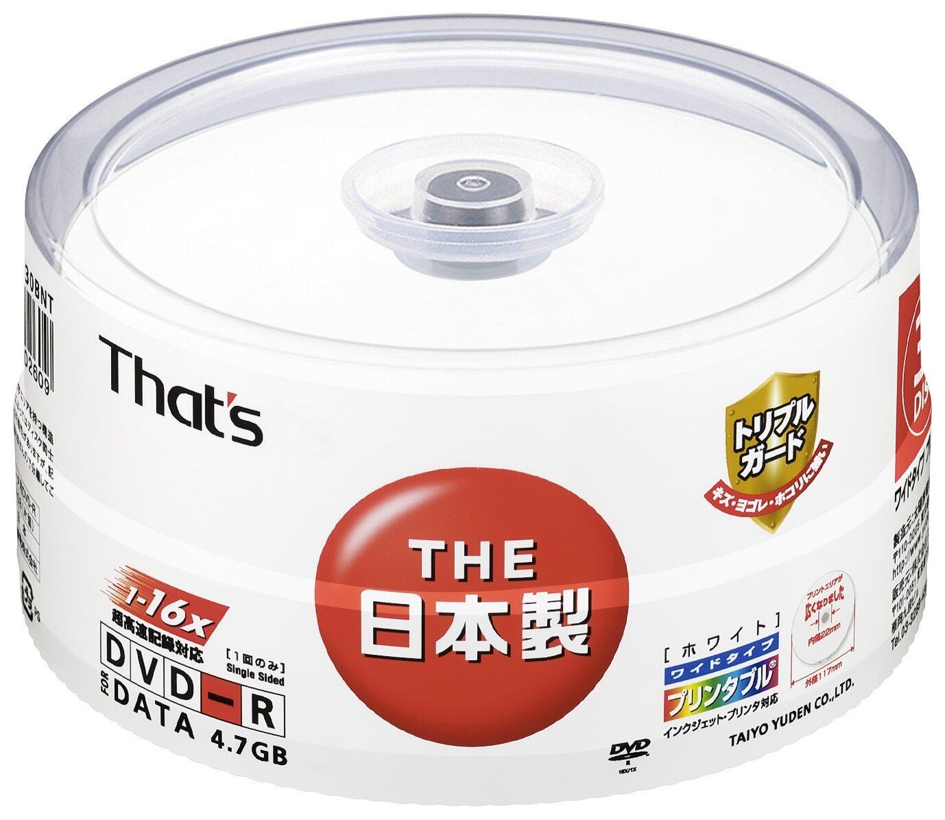 太陽誘電製 That's DVD-Rデータ用 16倍速4.7GB トリプルガード(ハードコート)ワイドプリンタブル スピンドルケース30枚入 DR-47WWY30BNT