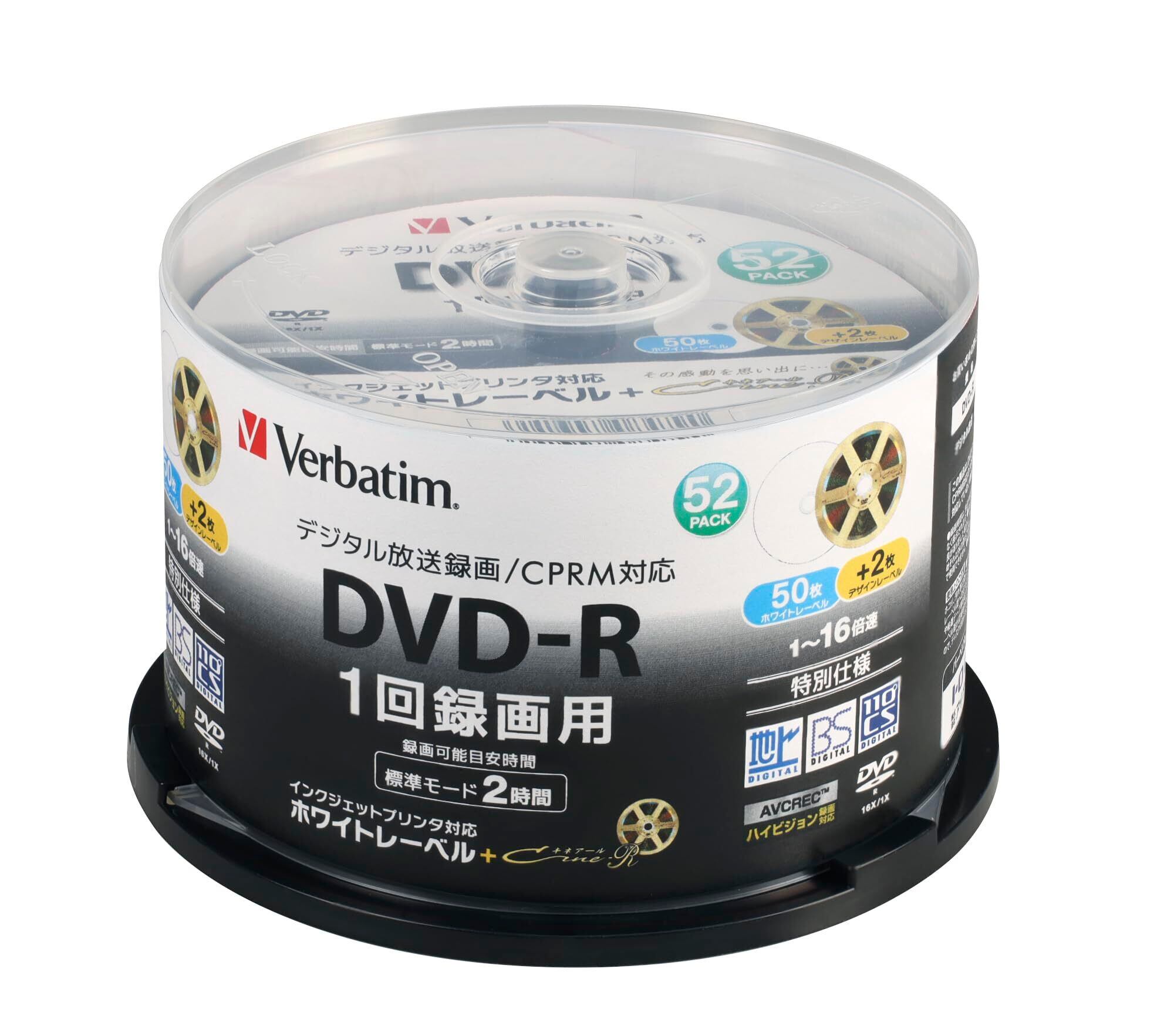 バーベイタム 1回録画用 120分 1-16倍速 50枚+2枚 インクジェットプリンタ対応(ホワイト) VHR12JPC52SVE