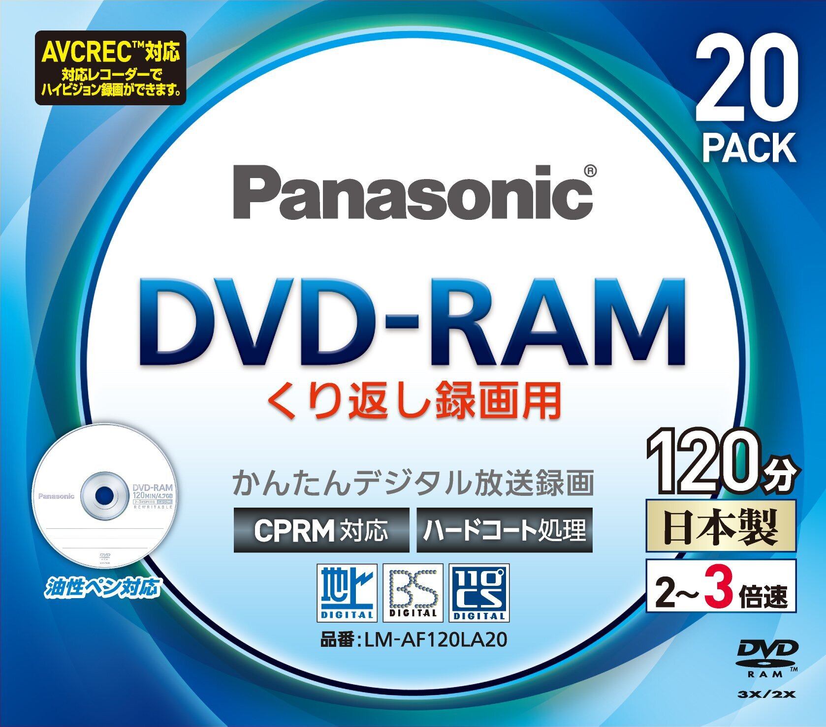 パナソニック 3倍速対応片面4.7GB DVD-RAM 20枚パックパナソニック LM-AF120LA20