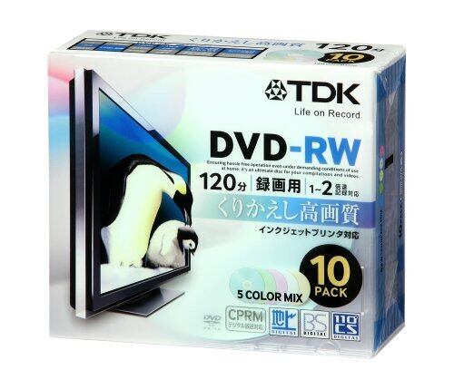 TDK 録画用DVD-RW デジタル放送録画対応(CPRM) 5色カラープリンタブル 1-2倍速 5mmスリムケース 10枚パック DRW120DPMA10U