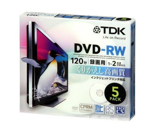 TDK 録画用DVD-RW デジタル放送録画対応(CPRM) インクジェットプリンタ対応 1-2倍速 5mmスリムケース 5枚パック [DRW120DPA5U]