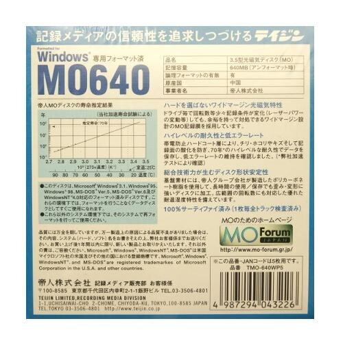 テイジン 3.5型MO 640MBクリアカートリッジ:5枚組・Pケース入:Winフォーマット済み。