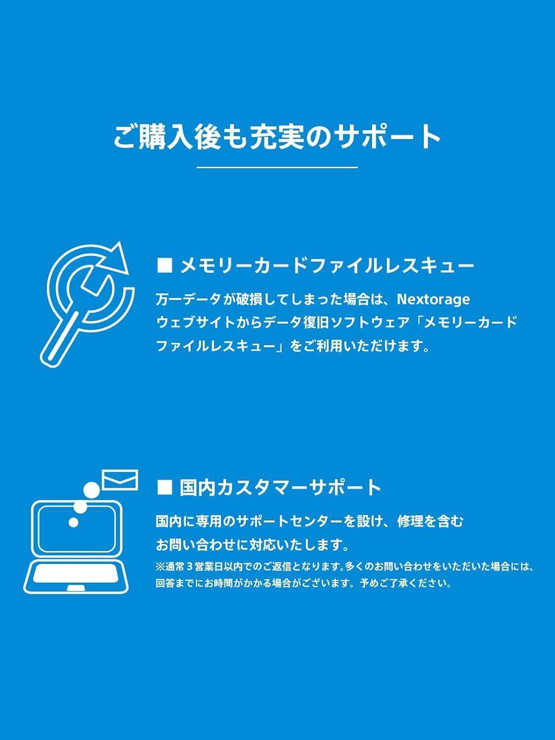Nextorage (ネクストレージ) について:Nextorageはソニーカメラ用のメモリーカードを20年間以上開発してきた元ソニーエンジニアメンバーが立ち上げた日本の会社です。クリエイティブからエンターテインメントまで、強い信頼性が求められる様々なシーンに最適化した製品を提供しています。