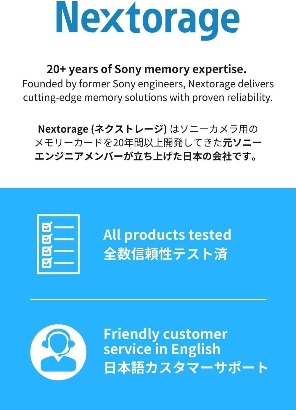 Nextorage (ネクストレージ) はソニーカメラ用メモリーカードを20年間以上開発してきた元ソニーエンジニア達が立ち上げた会社です。