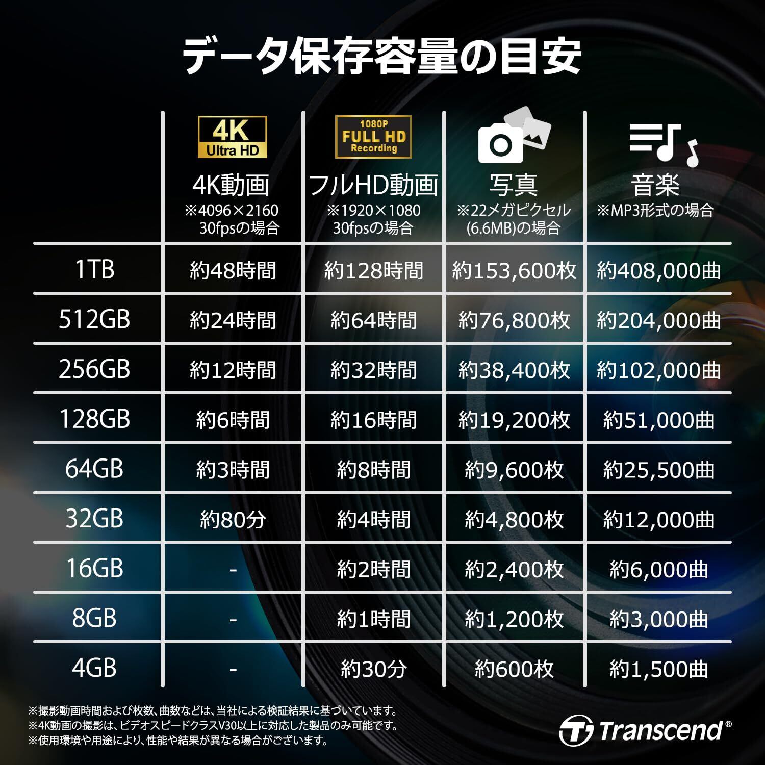 ◆規定に関してはトランセンドホームページをご参照ください。
