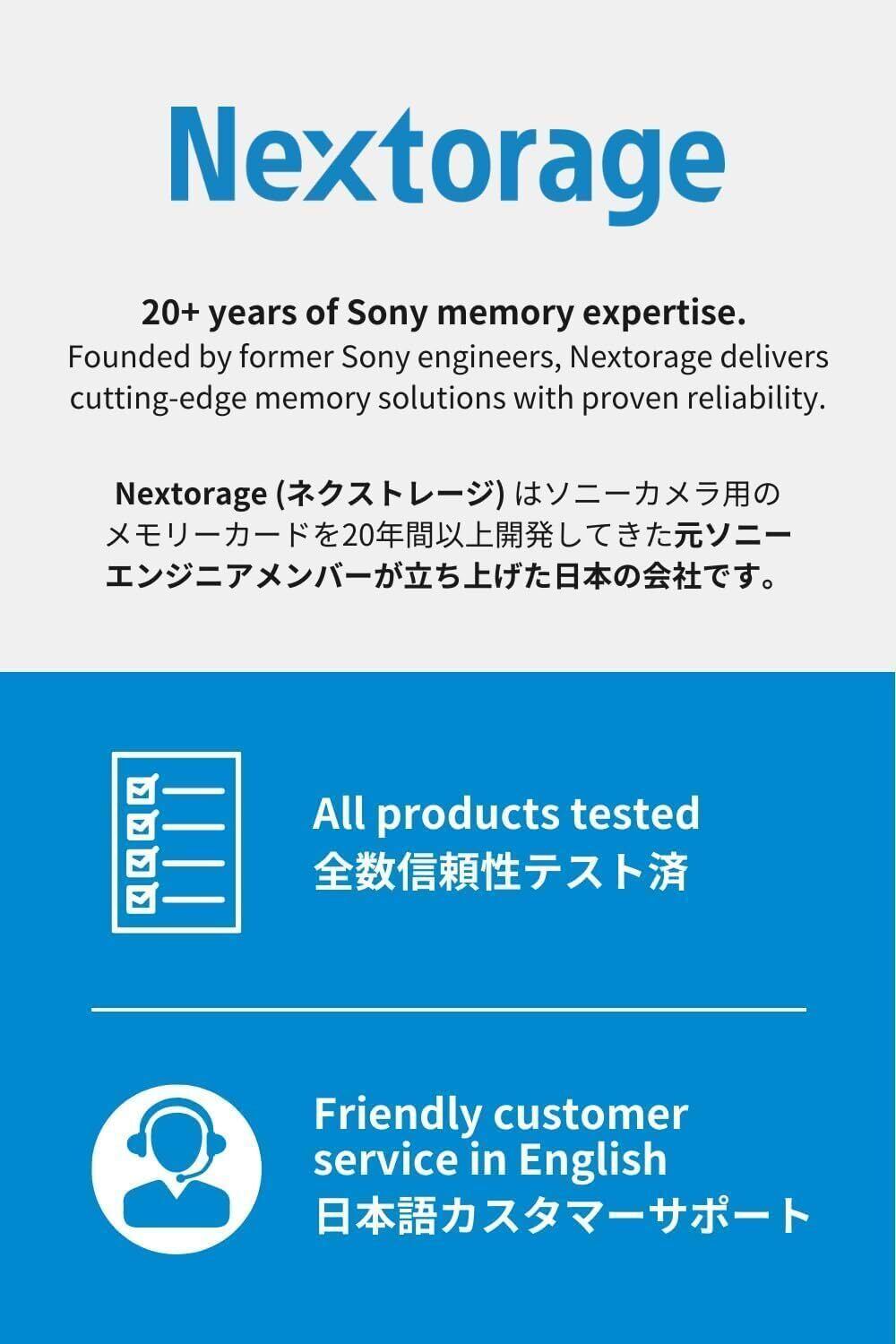 Nextorage (ネクストレージ) について:Nextorageはソニーカメラ用のメモリーカードを20年間以上開発してきた元ソニーエンジニアメンバーが立ち上げた日本の会社です。クリエイティブからエンターテインメントまで、強い信頼性が求められる様々なシーンに最適化した製品を提供しています。