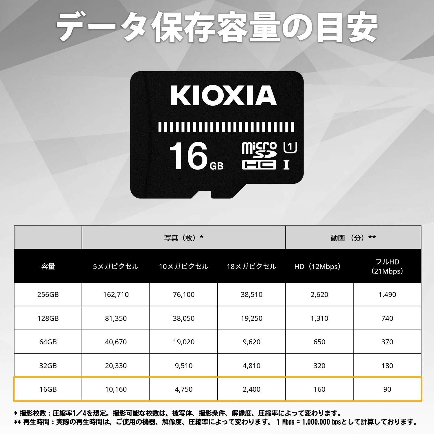 KIOXIA(キオクシア) 旧東芝メモリ microSD 16GB UHS-I対応 Class10 (転送速度50MB/s) 国内サポート正規品 メーカー3年 KTHN-MW016G