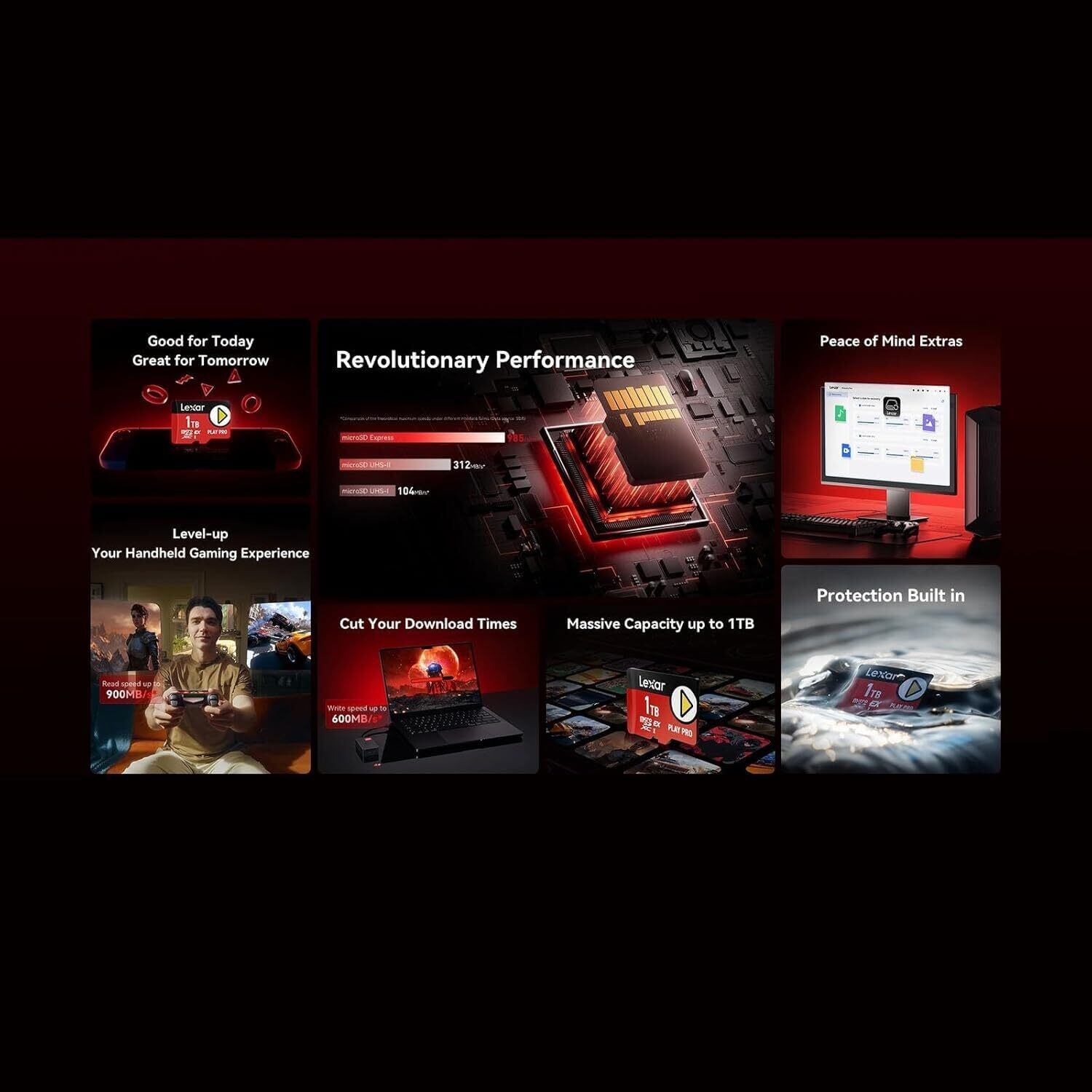Lexar PLAY PRO microSDXC Expressカード 1TB 最大読込900MB/s最大書込600MB/s Nintendo Switch 4K動画 ドローン対応 防水 耐衝撃 並行输入品