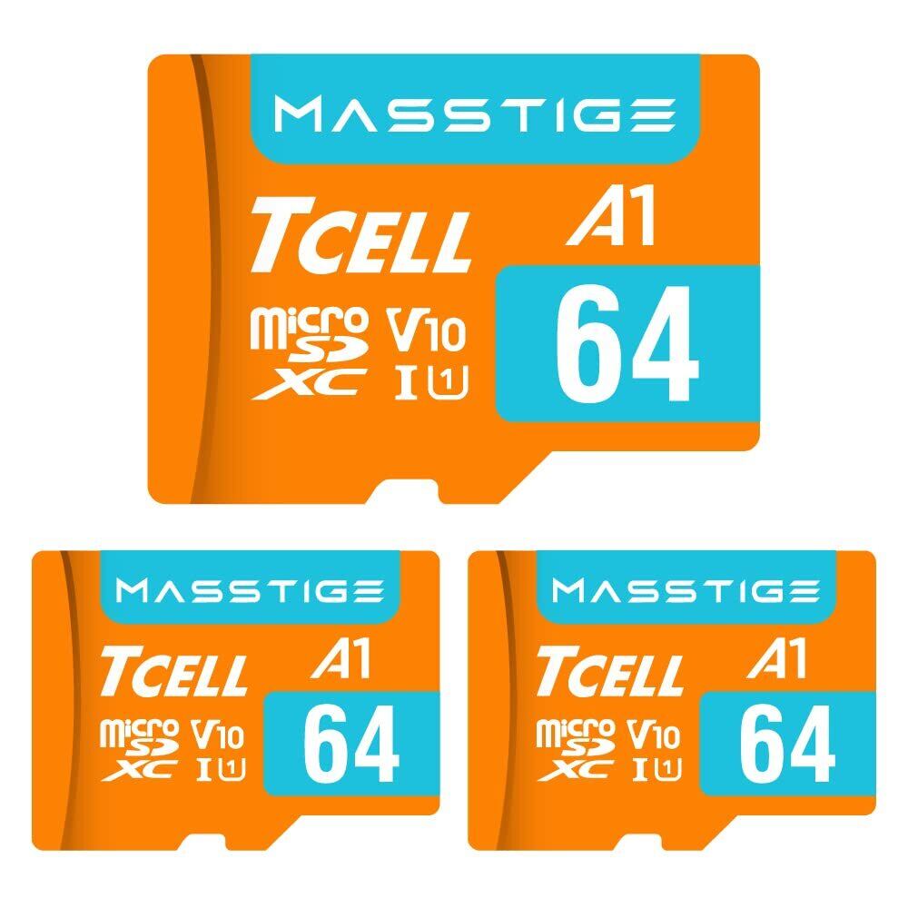 TCELL MASSTIGE 64GB 3個セット 台湾製 microSDXC メモリカード アダプター付き - A1、USH-I U1、V10、4K、マイクロSDカード、読み込み最大100MB/秒、フルHDと4K UHD microSD、Nintendo Switch 動作確認済