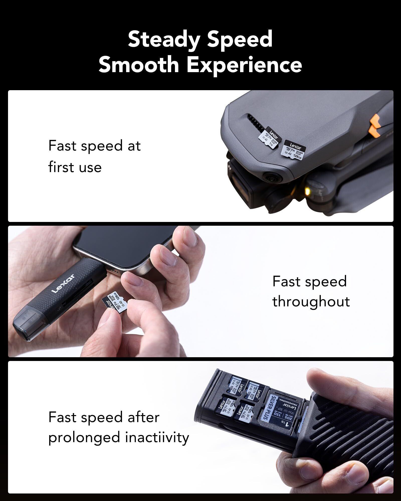 LexarのMicroSDカードは、優れた耐久性を誇り、衝撃や温度変化、湿気といった過酷な環境にも耐える設計です!安心して使用できる性能を持ち、あなたの大切なデータをしっかり守ります。旅行やアウトドアシーンでも頼れるパートナーです。