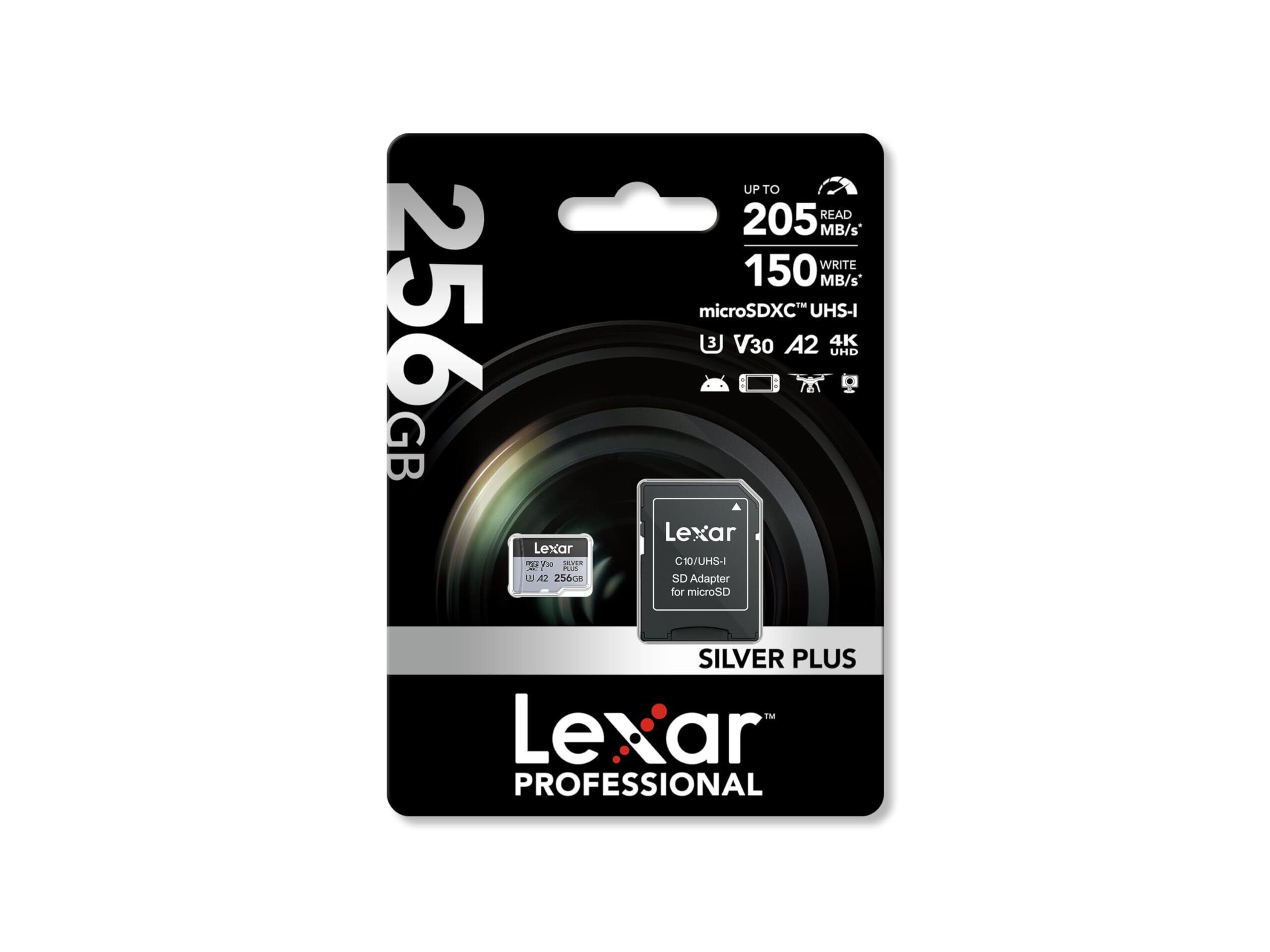 Lexar Silver Plus 256GB Micro SDカード 最大205MB/s MicroSDXC UHS-Iフラッシュメモリーカード アダプター付き C10 U3 A2 V30対応 フルHD 4K UHD 高速TFカード ドローン アクションカメラ 携帯型ゲーム機対応