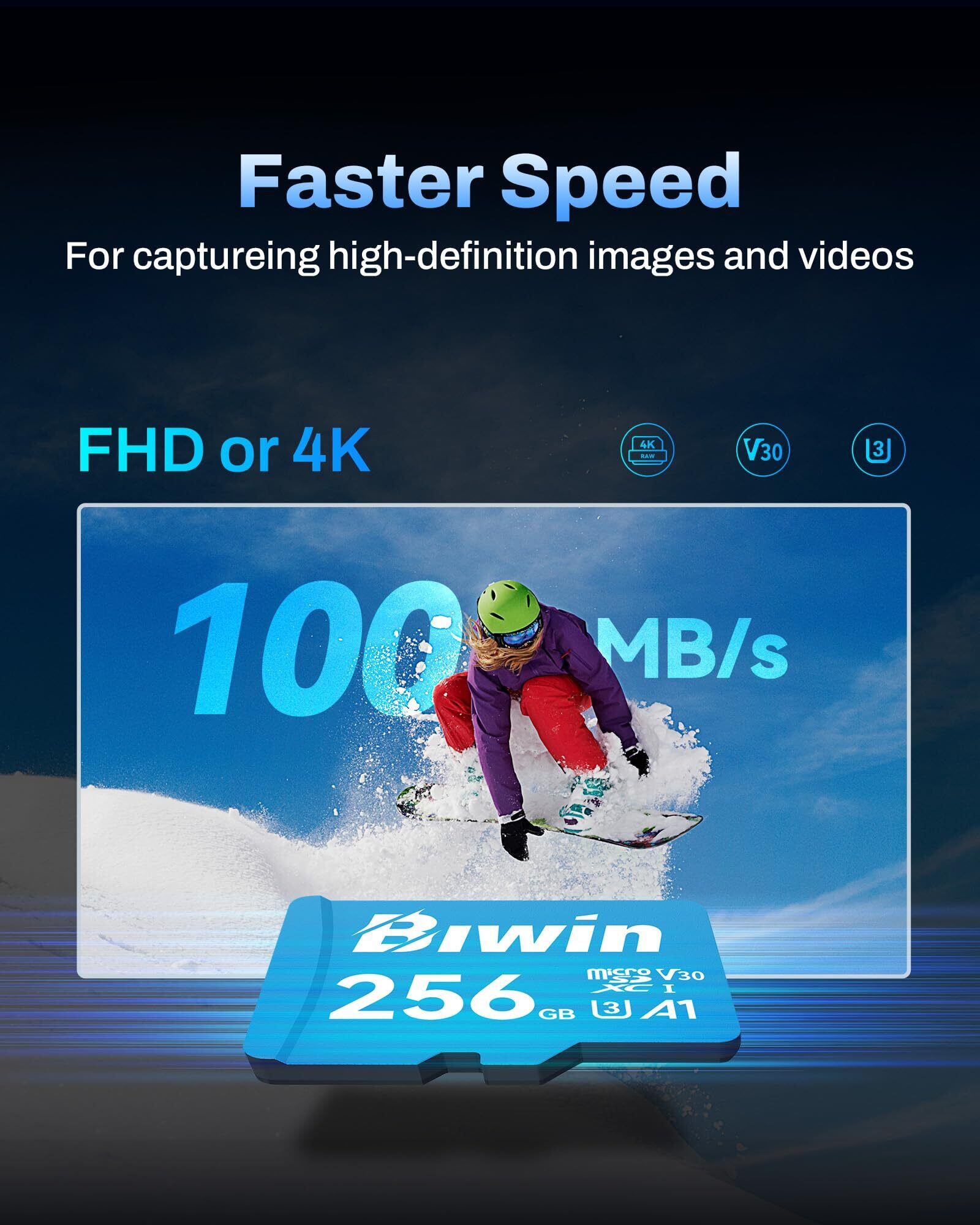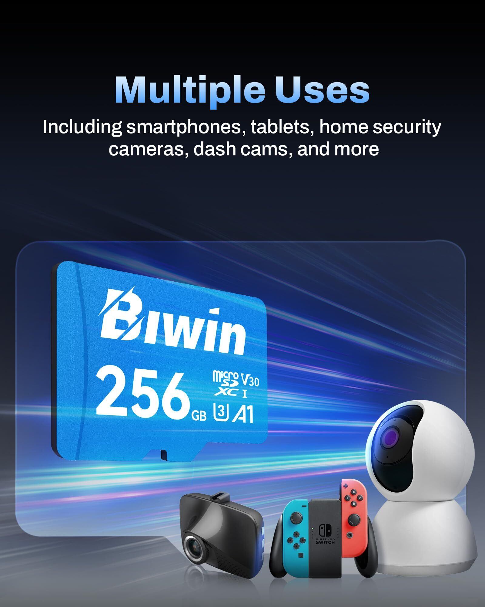 Biwin microSDカード MS100 256GB 100MB/s読出 TFカード SDXC UHS-I U3 V30 4K UHD & Full HD撮影対応 高速メモリカード Class10 マイクロSDカード Nintendo Switch動作確認済 メーカー3年