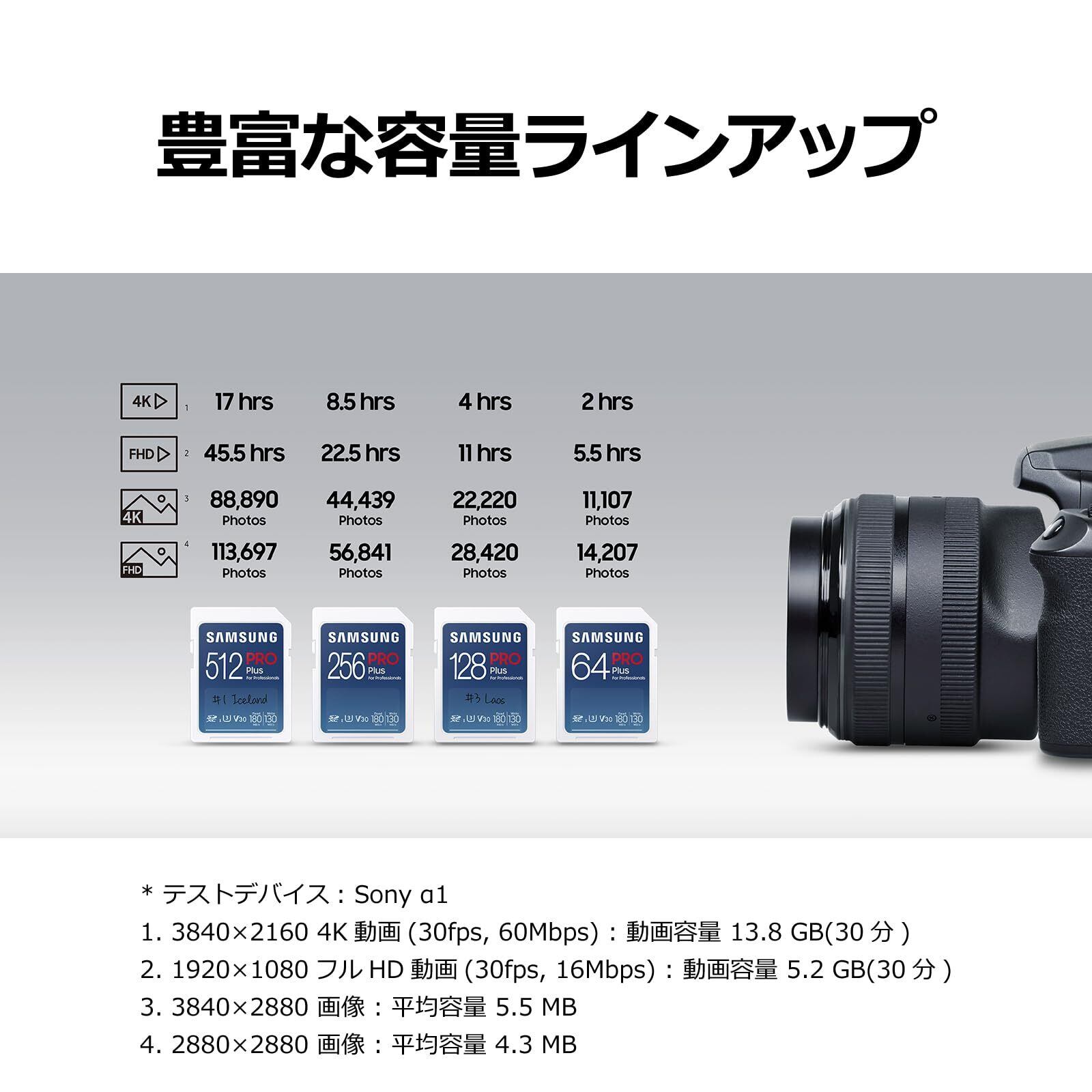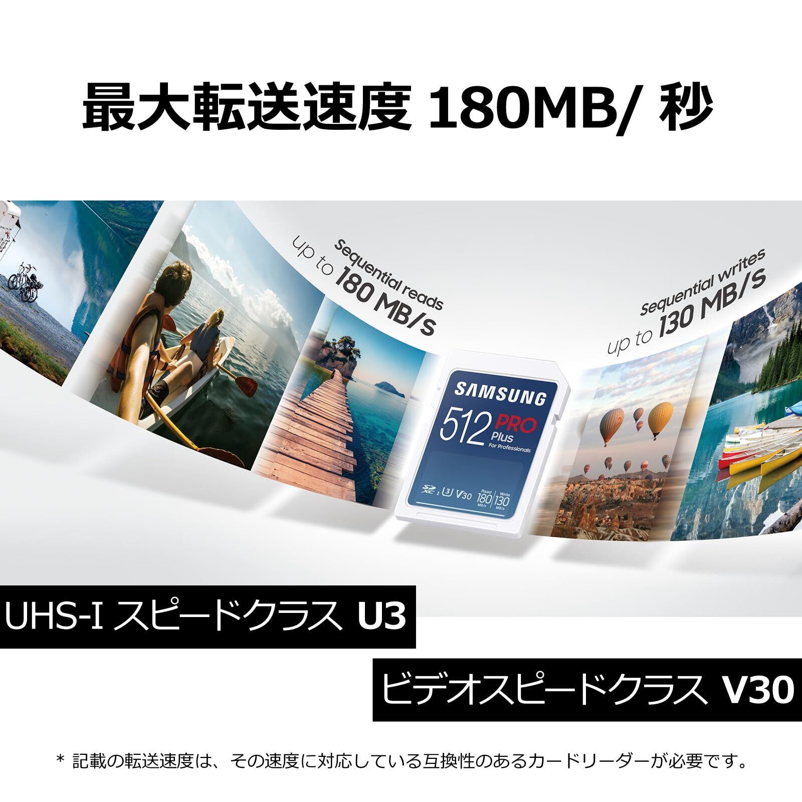 Samsung SDカード PRO Plus、最大読み込み速度180MB/s ※対応カードリーダー使用時