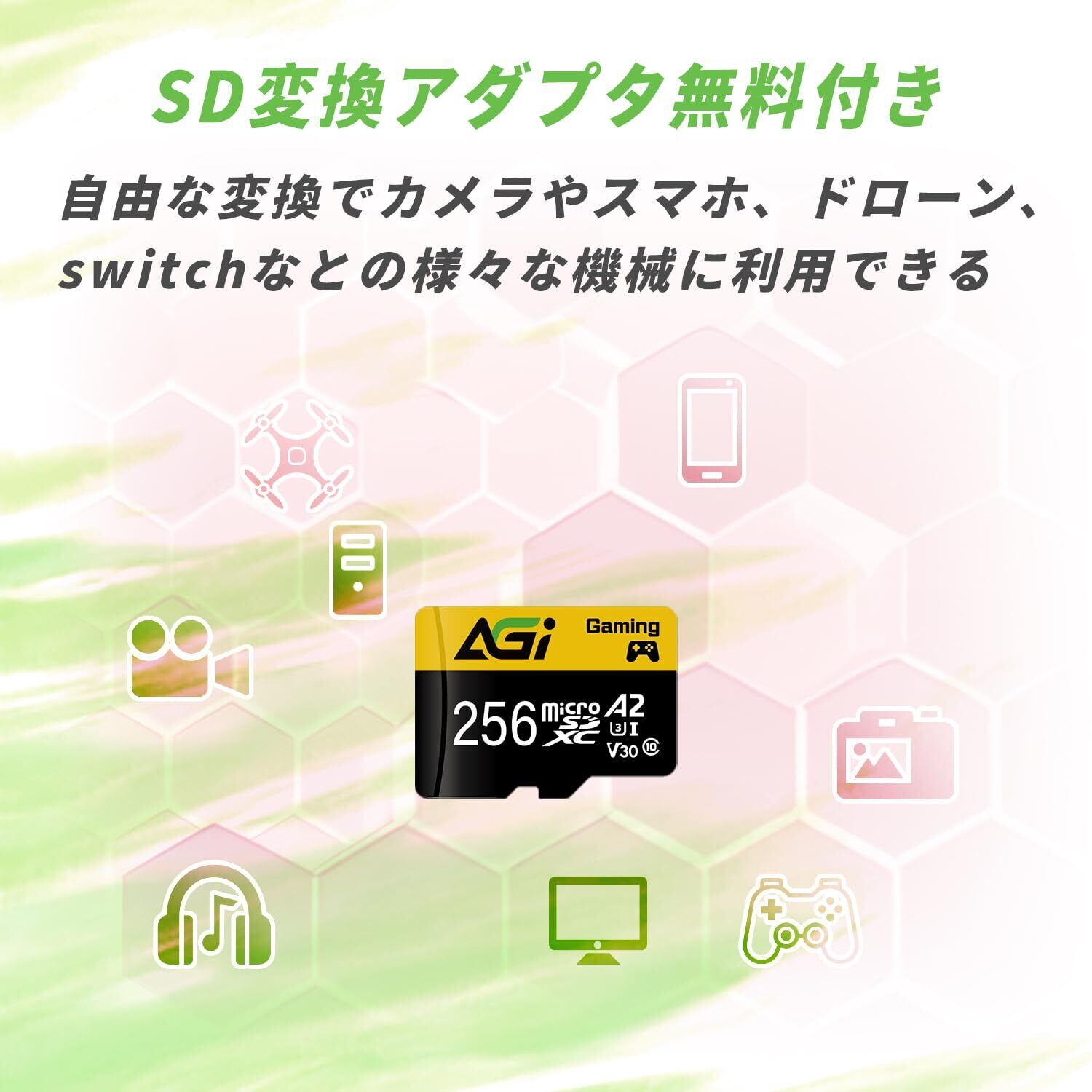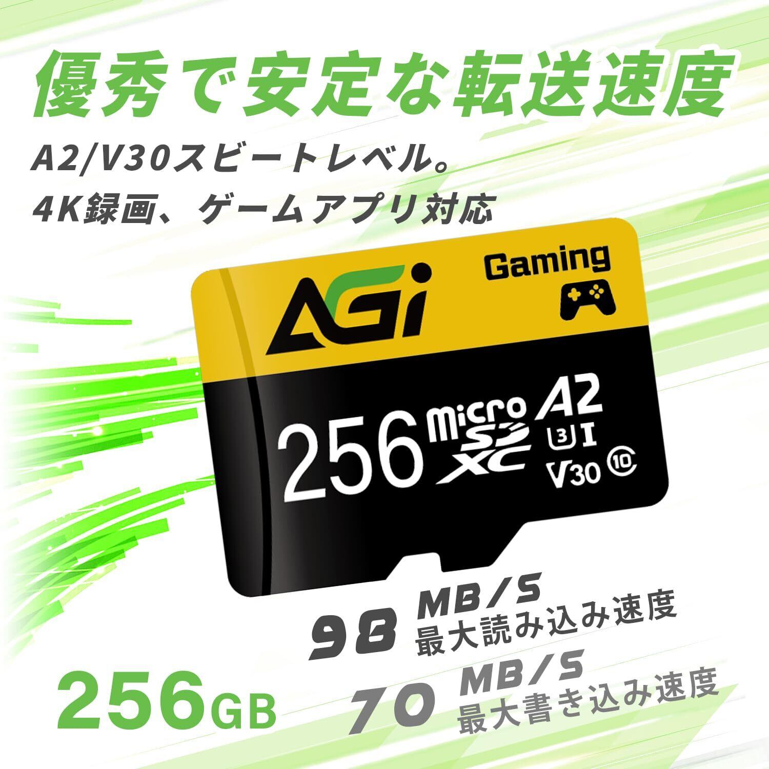AGI 256GB TF138 MicroSDXC メモリカード A2 U3 V30 4K C10(読み込み・書き込み速度98/70MBs)