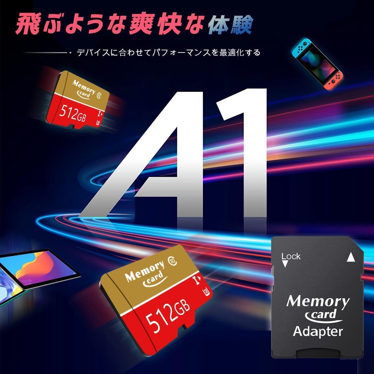 マイクロsd メモリーカード 512GB Memory Card アダプター付き 耐温度容量拡張 超高速転送 U3、高速 大容量 4K UHD動画 C10 データ保存 PC スマホタブレット適用