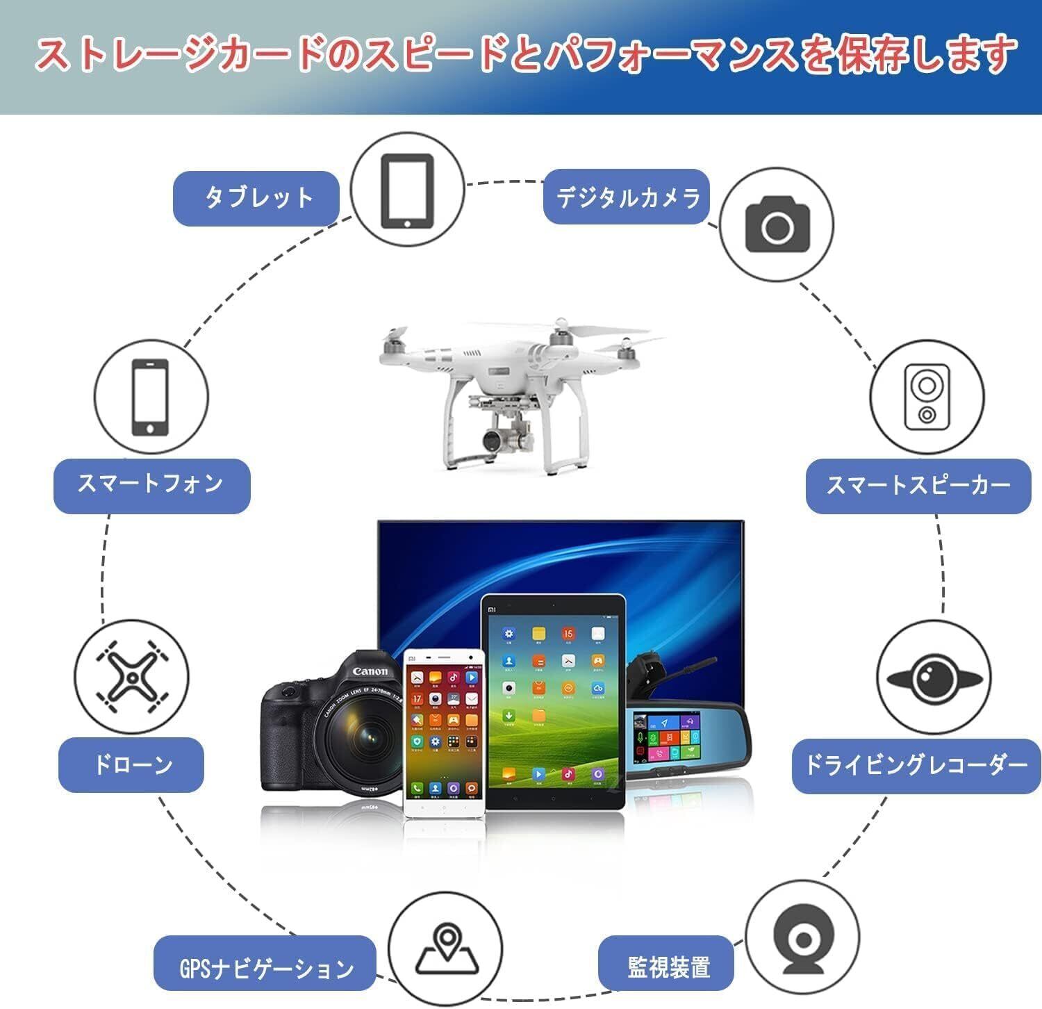 スマートフォンやタブレットでのスムーズなアプリケーション使用に最適なA1グレード,高解像度の画像や動画を簡単に転送
