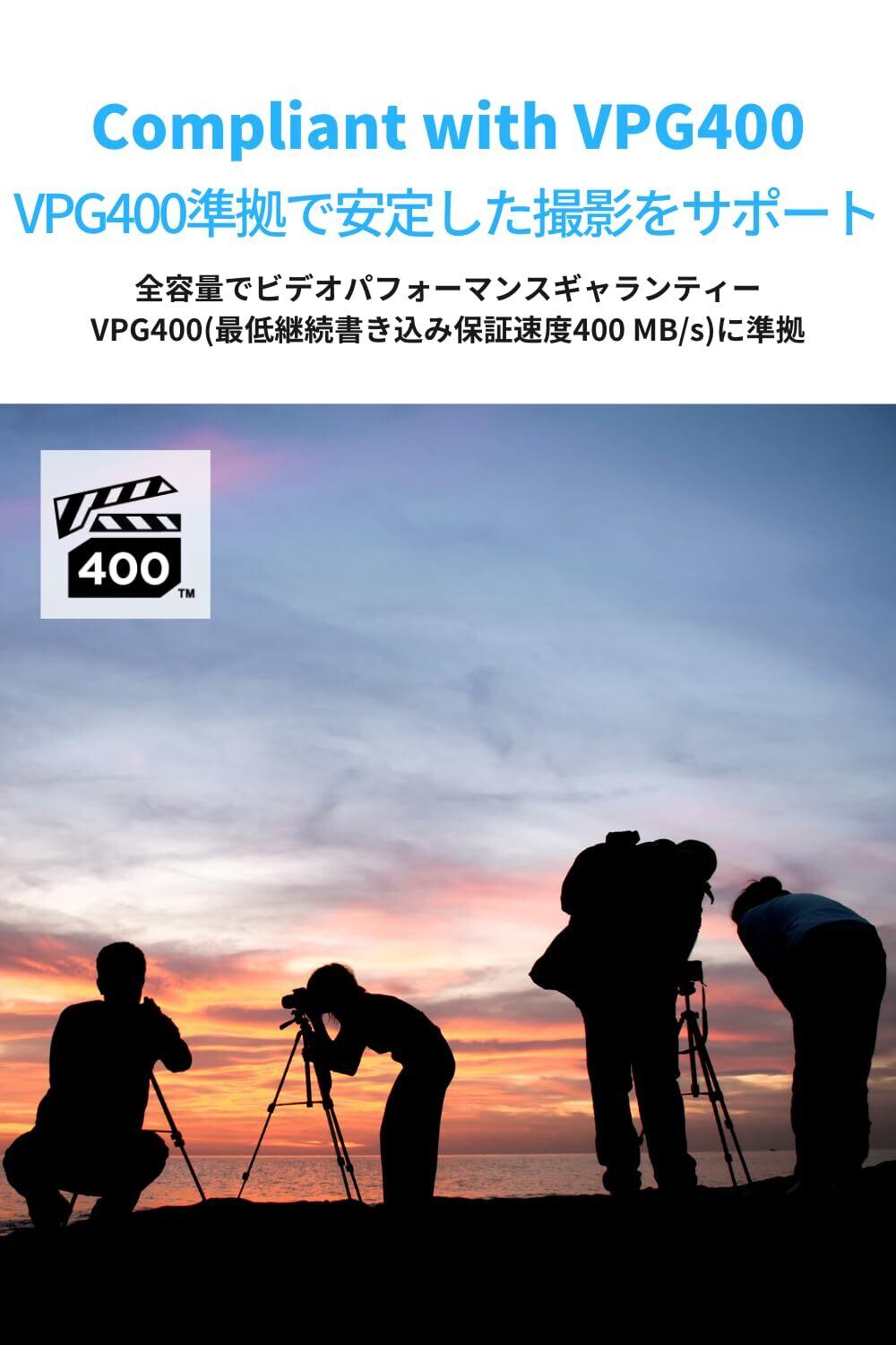 8K動画など高ビットレート動画撮影モードに対応するVPG400認証