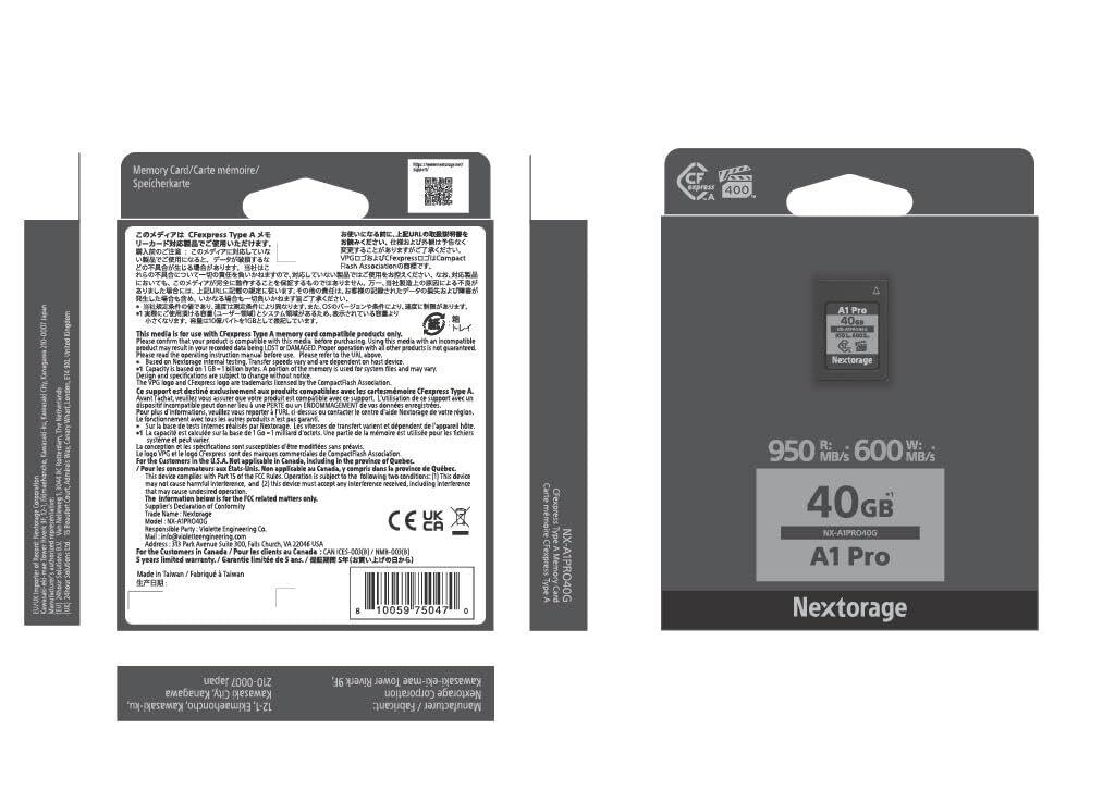 Nextorage 日本メーカー CFexpress Type A 40GB VPG400 最大読出し速度950MB/s 最大書き込み速度600MB/s NX-A1PRO40G