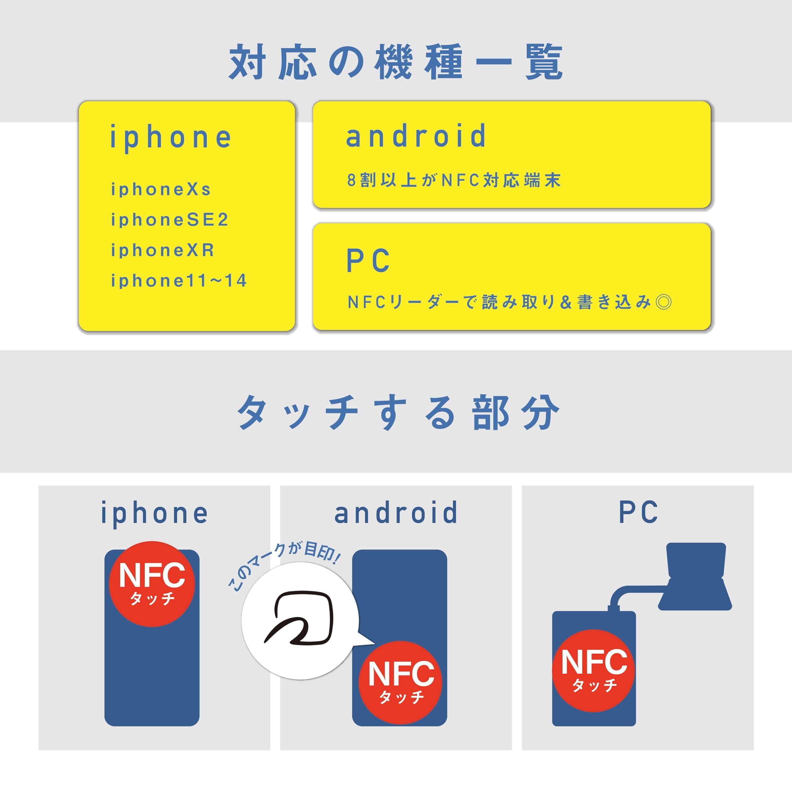書き換え可能なNTAG215チップを採用しており、何度でも情報を更新できるため、シーンに合わせた使い方が可能です!イベントや店舗でのお客様へのPRにも最適で、経済的かつ実用的なアイテムです。