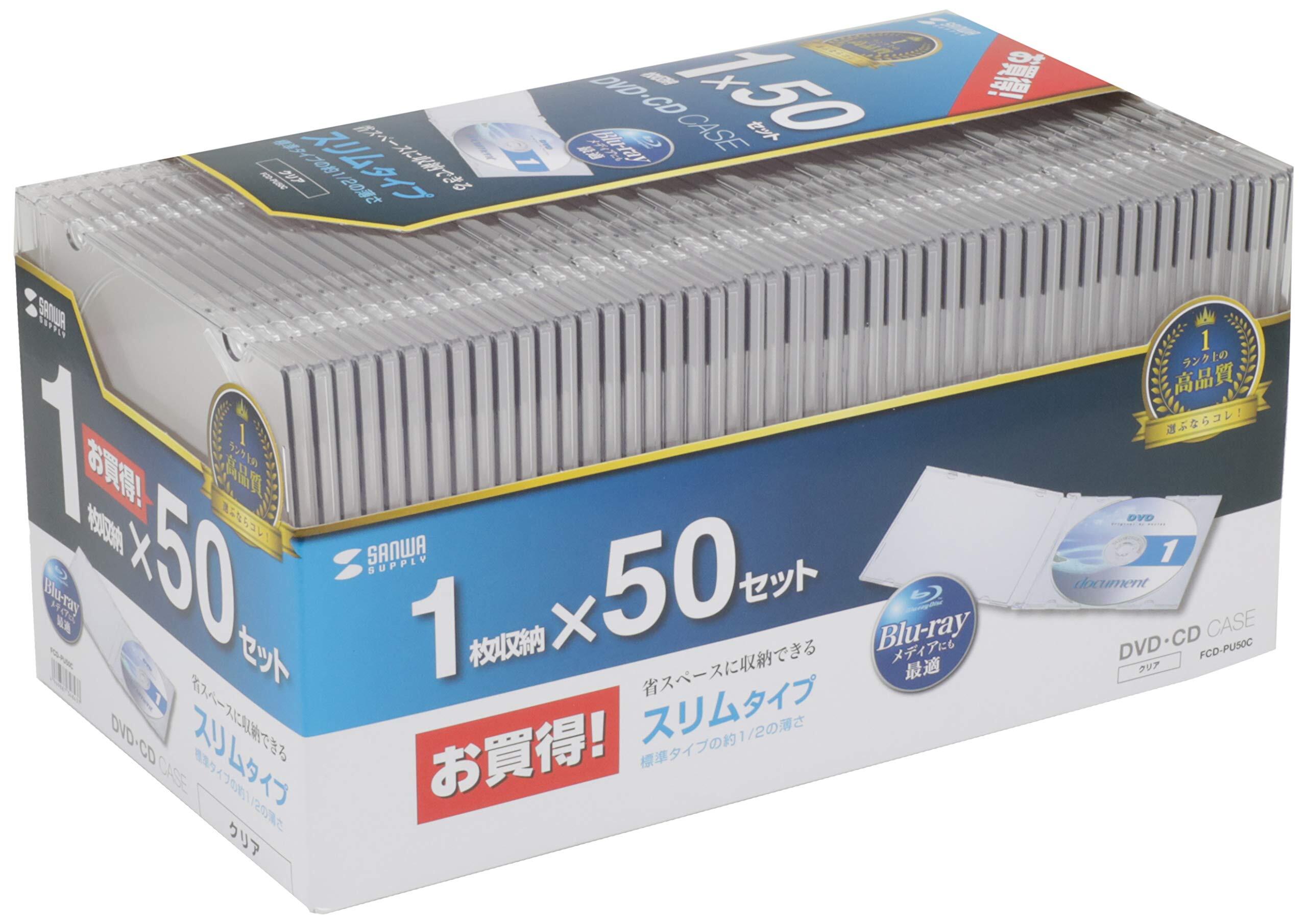 サンワサプライ スリムCD/DVD/BDケース 1枚収納×50枚セット 厚さ約5mm薄型タイプ クリア FCD-PU50C