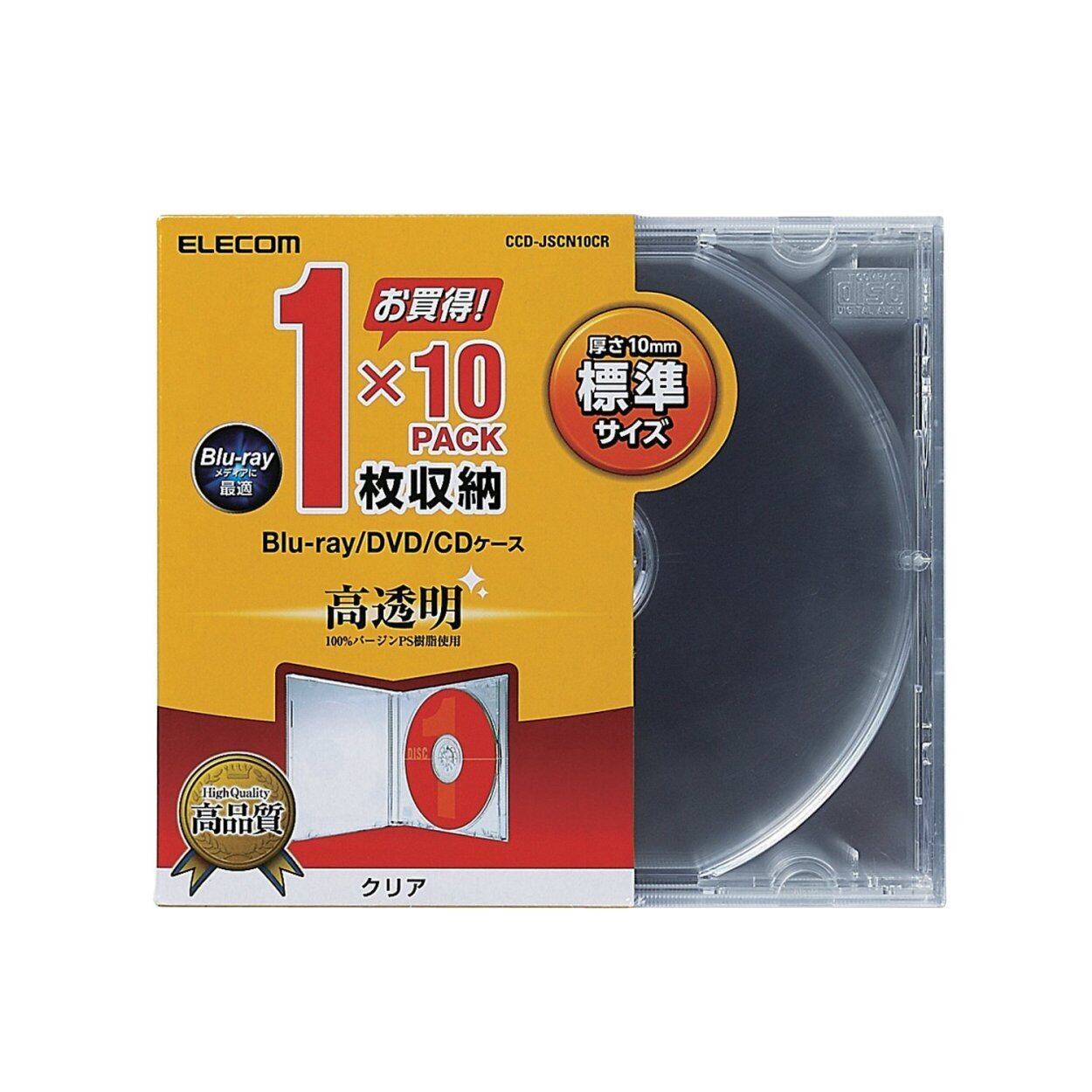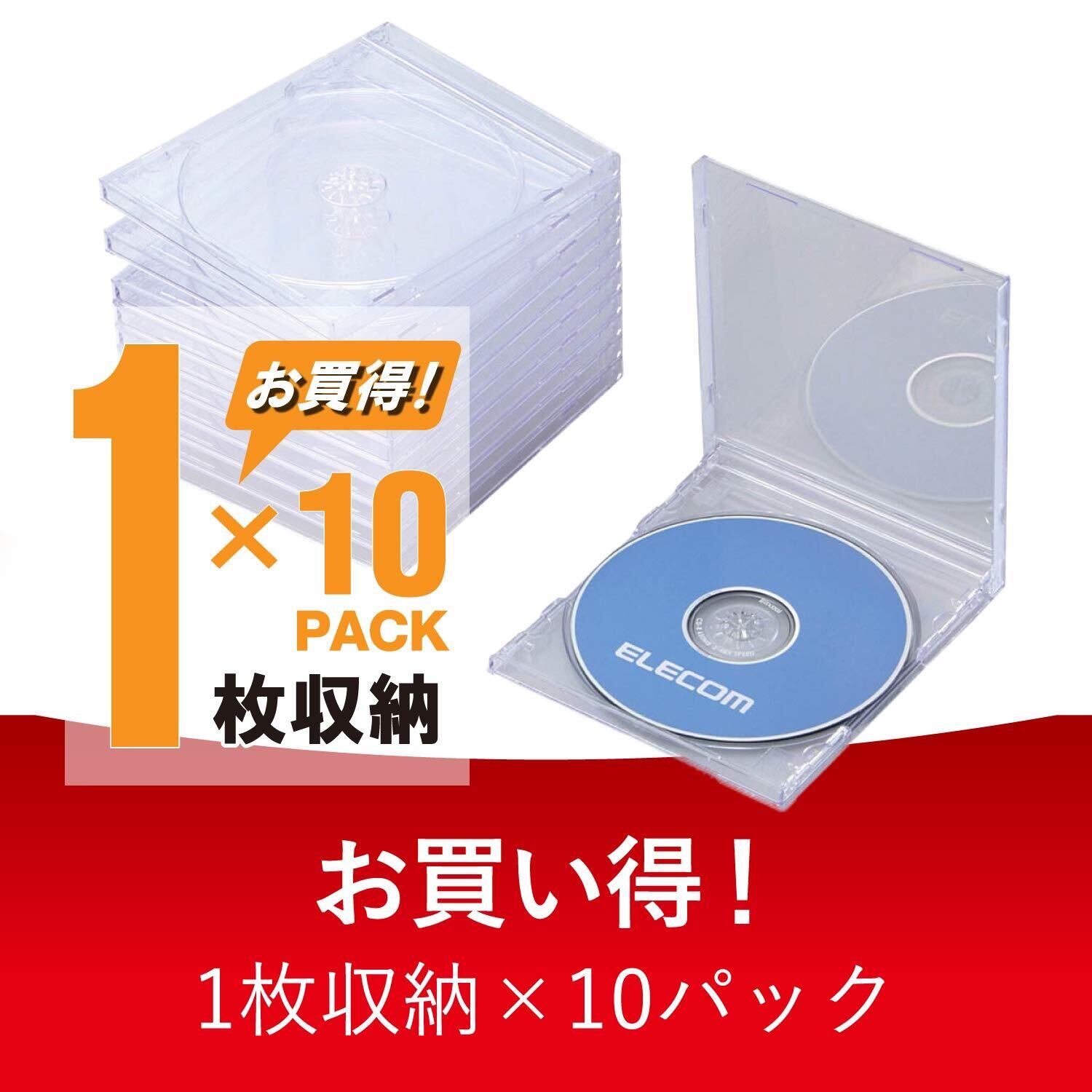 エレコム CD/DVDプラケース/1枚収納/10パック/クリア