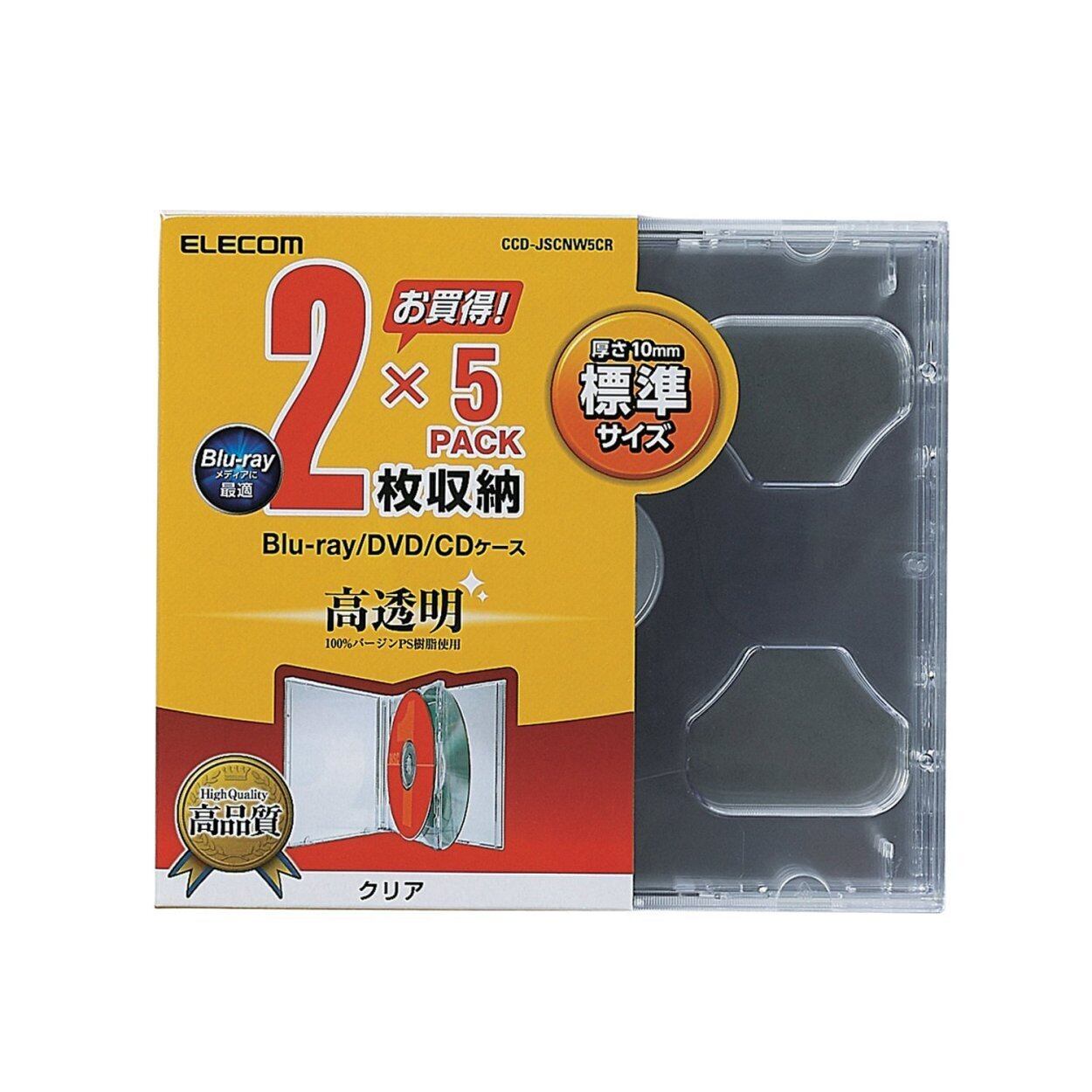 エレコム DVD BD CDケース プラケース 標準タイプ 2枚収納 5枚パック クリア CCD-JSCNW5CR