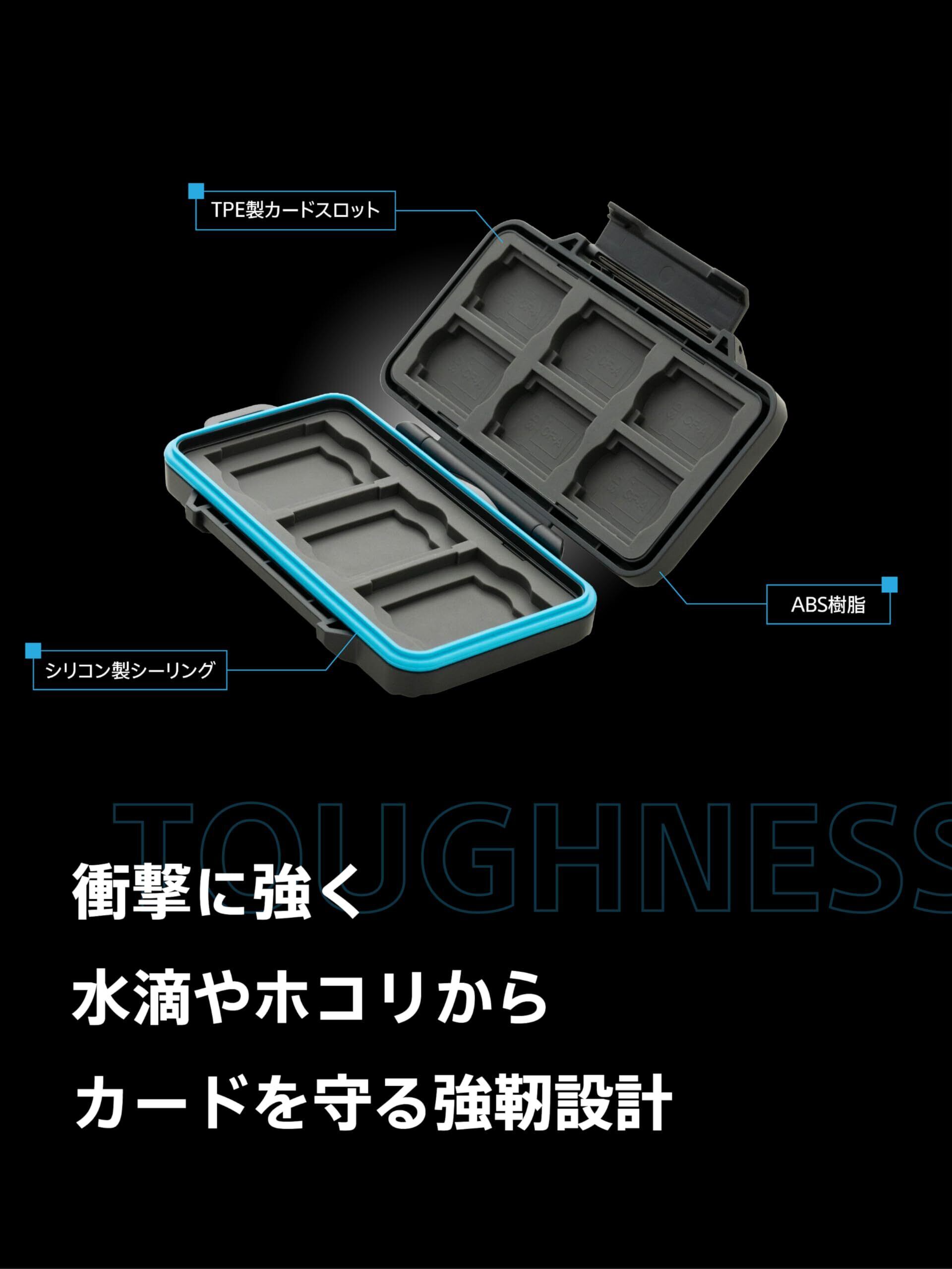 衝撃や水、汚れに強く、大切なデータが入ったメモリーカードを安全に保護するメモリーカードケースです。複数のカードを種類ごとに収納でき、必要なカードをすぐに取り出すことができます。