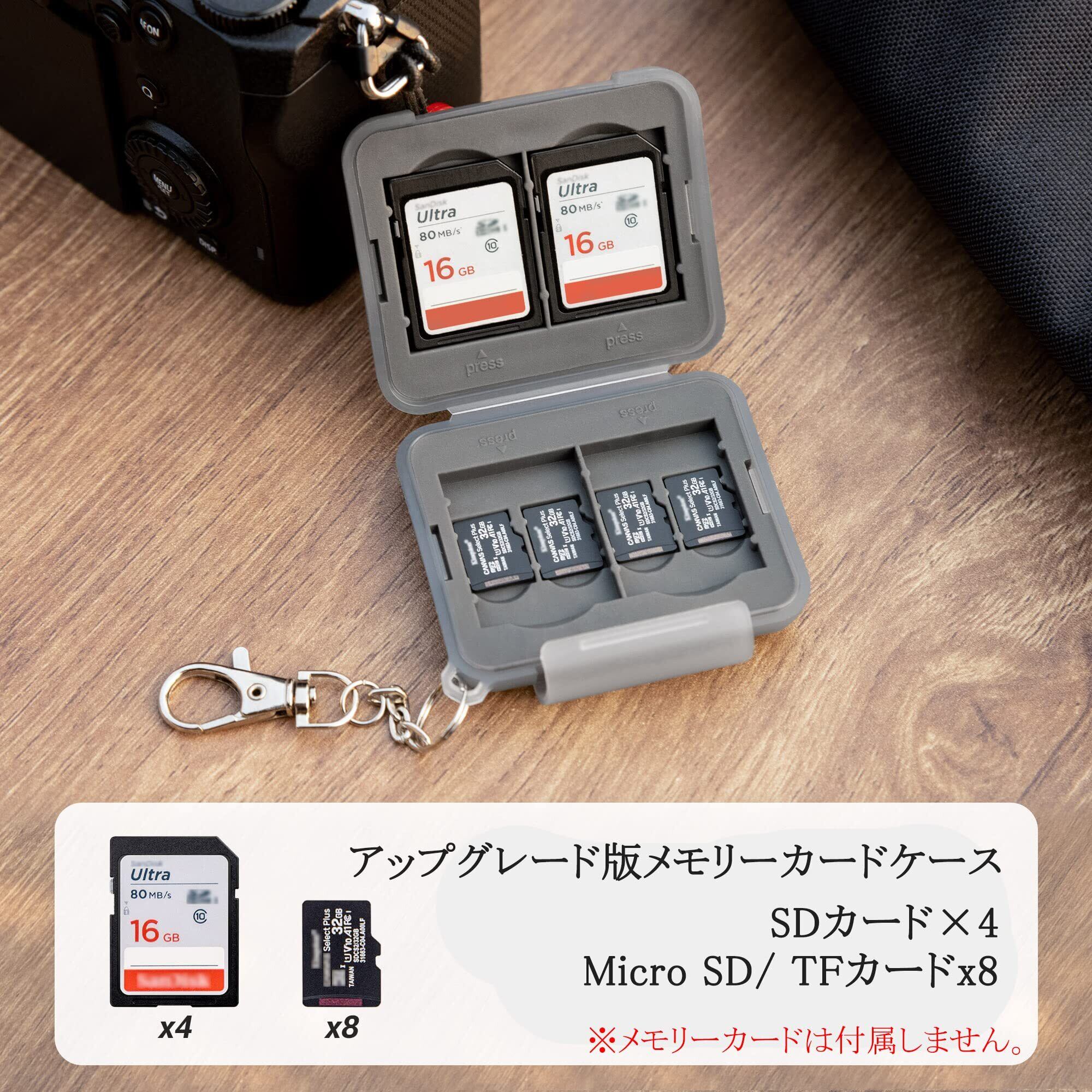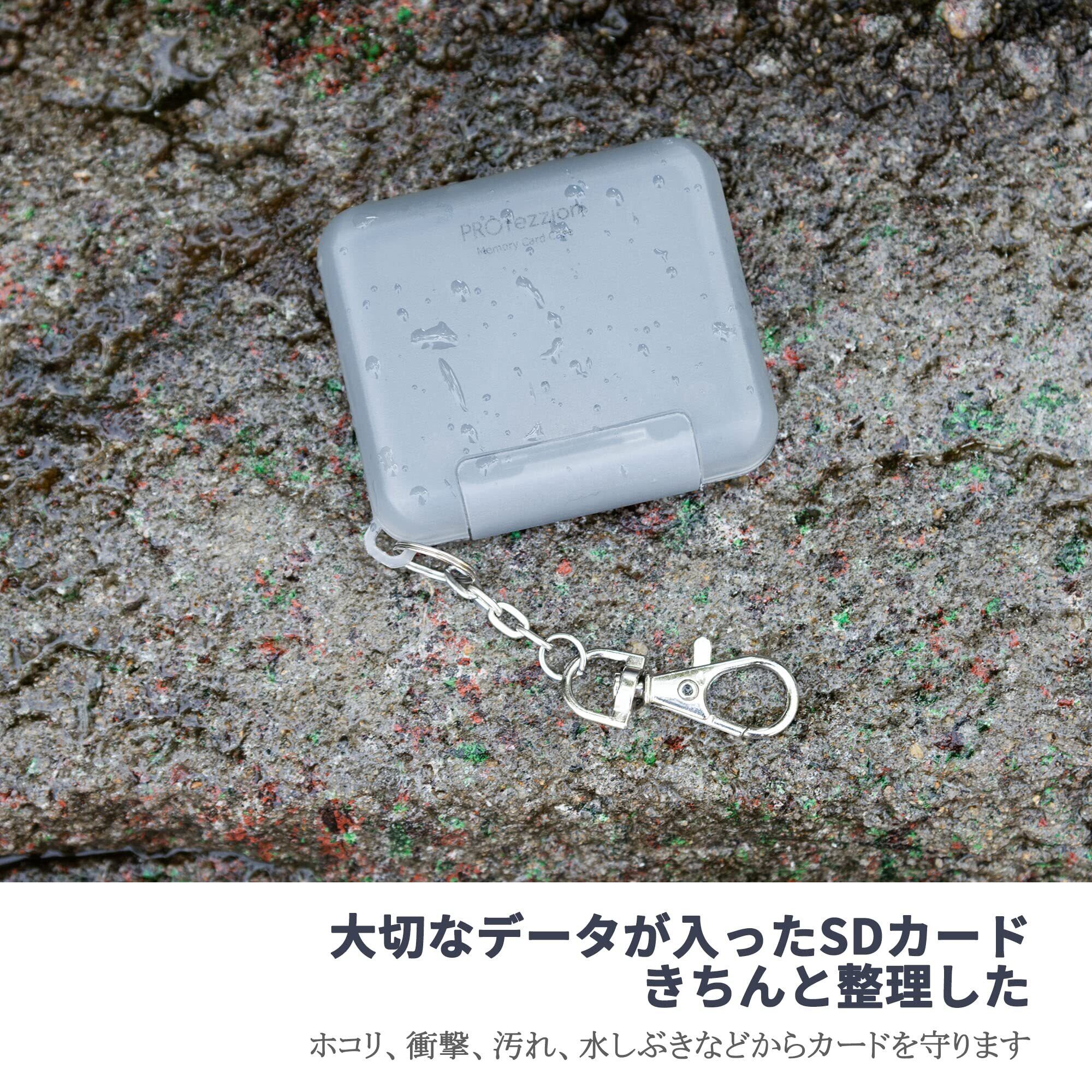 PROfezzion 4枚 SDカード ケース microsd ケース [ SDカード *4枚+ マイクロsdカード *8枚] SDメモリー カードケース SDXCカード SDHCカード 保存 防水 防塵 クッション素材 耐衝撃 携帯便利 カラビナ 付き グレー