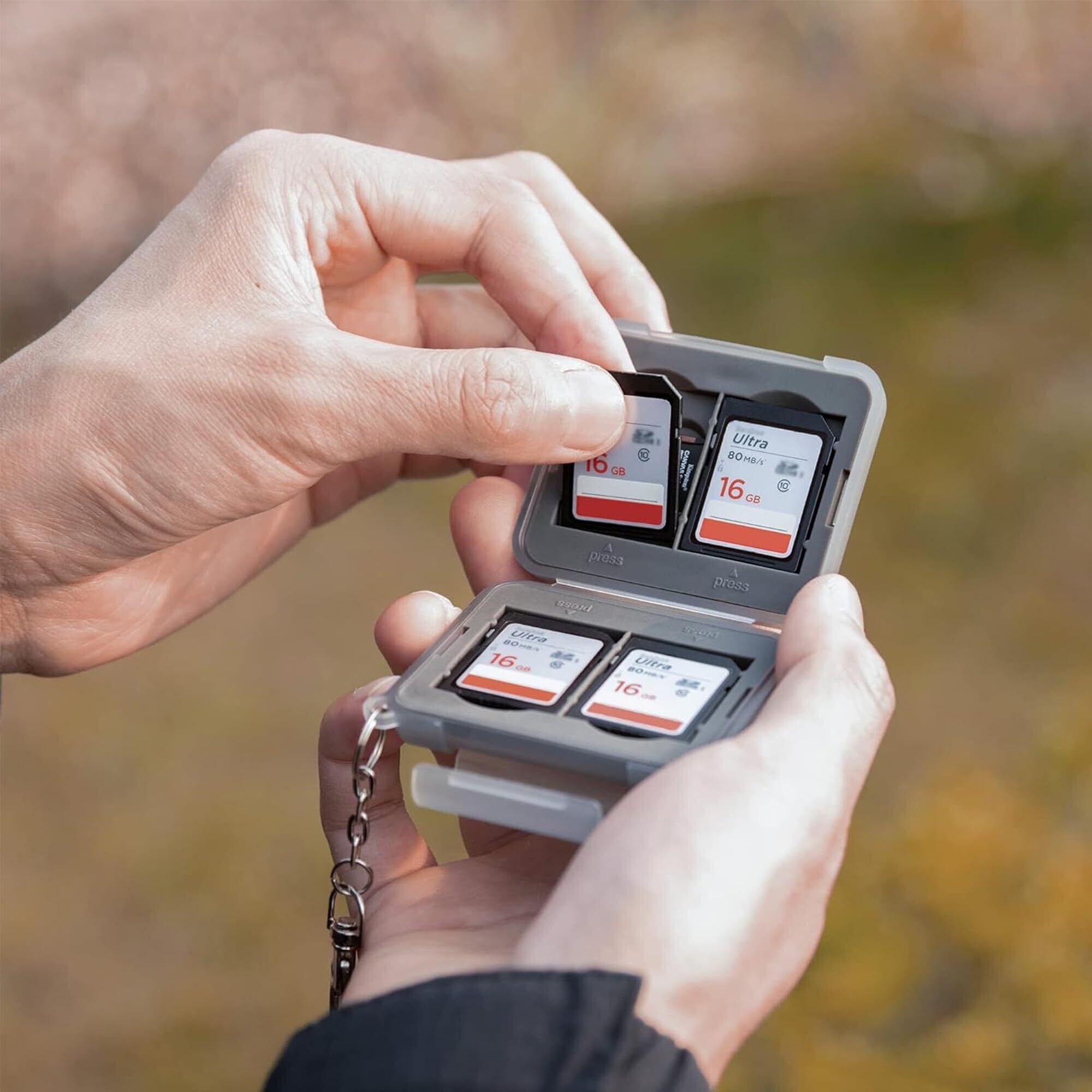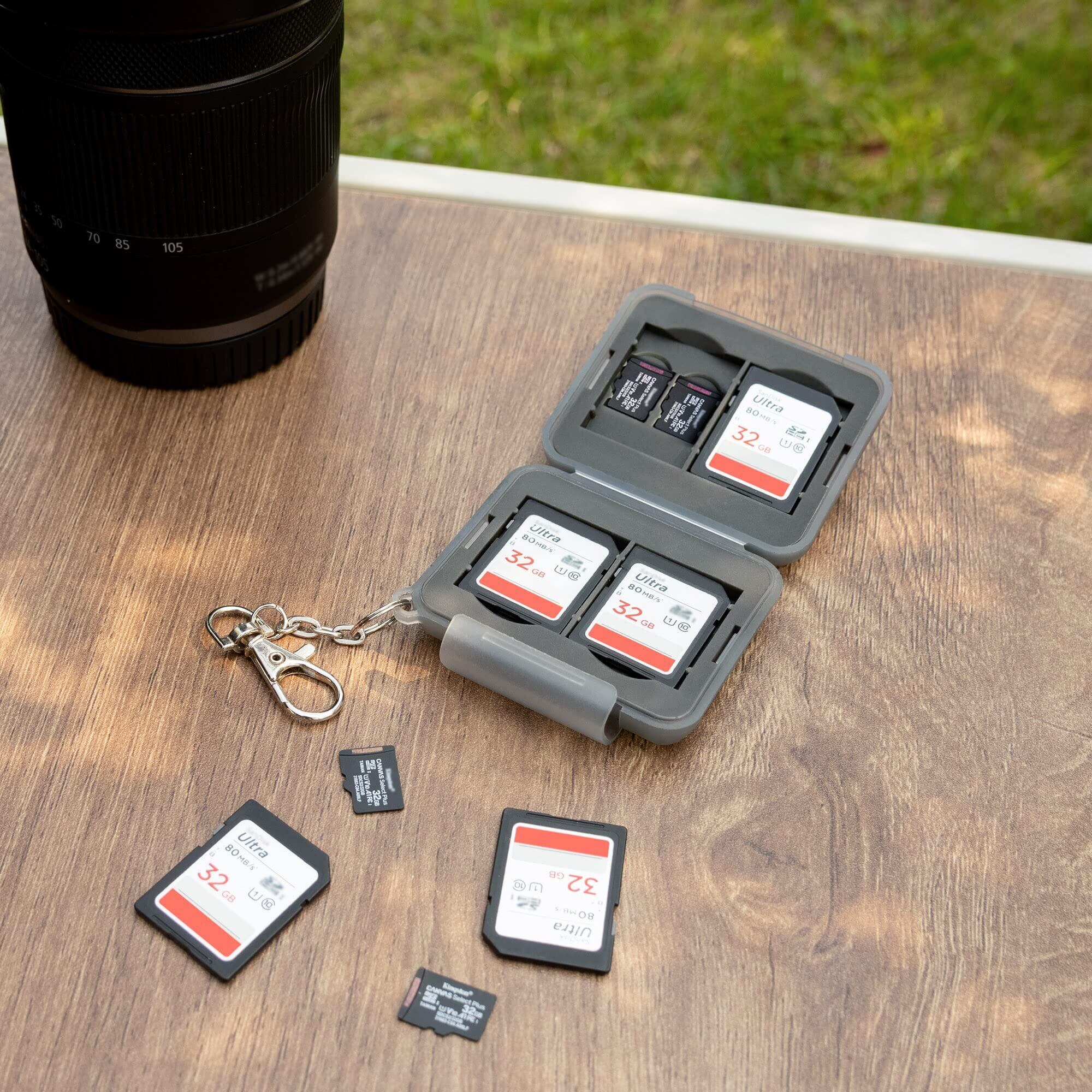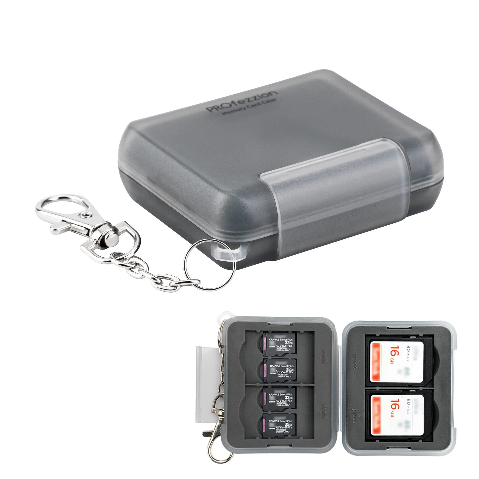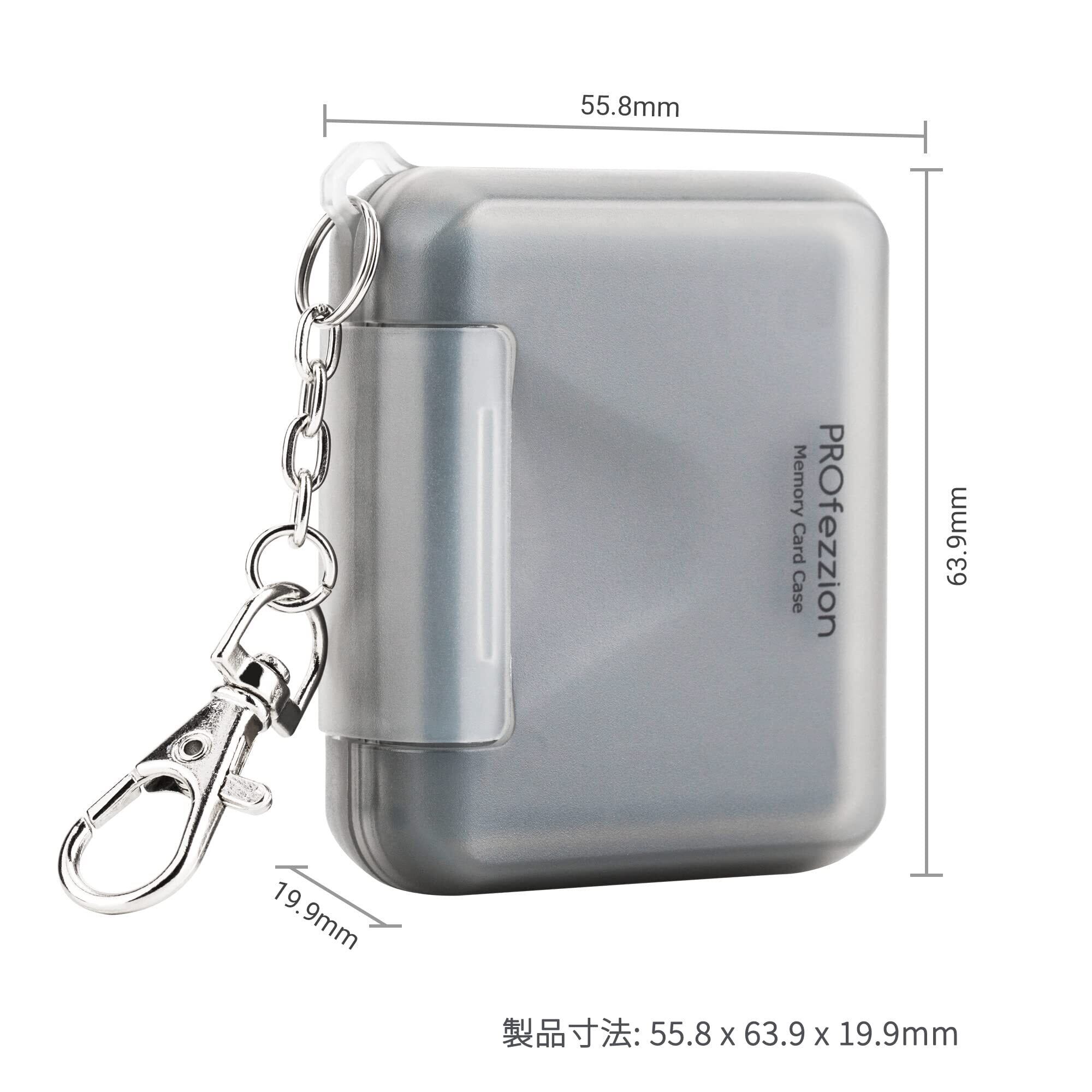 「PROfezzion SDカード ケース」は、最大4枚のSDカードと8枚のマイクロSDカードをしっかり収納できる信頼のアイテムです!このケースは、大切なデータを安全に保護し、整理整頓にも最適です。