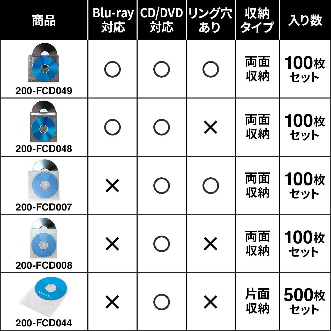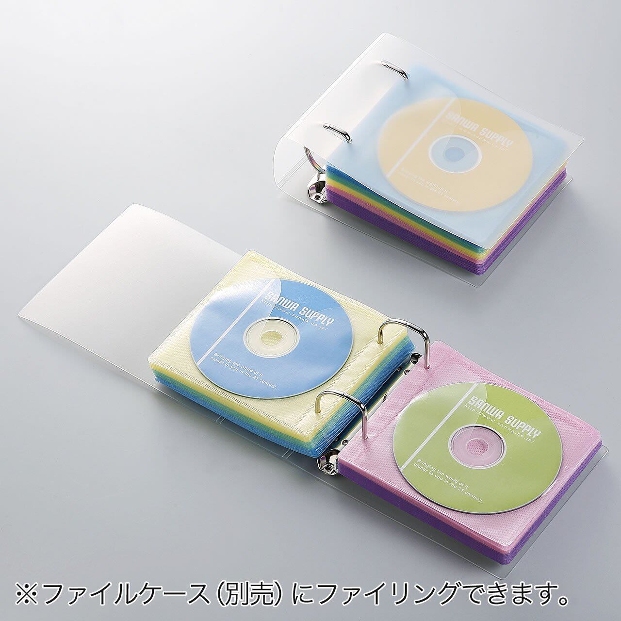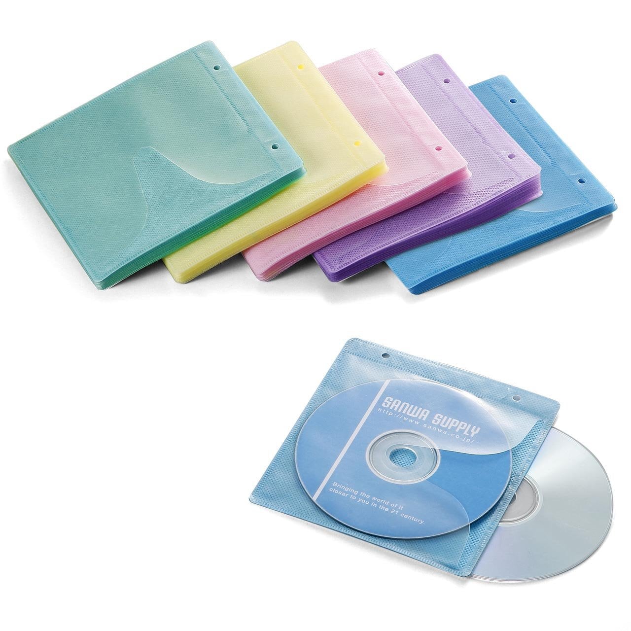 サンワダイレクト 不織布ケース CD・DVD用 100枚入り 両面収納 インデックスカード付 リング穴付き ミックス 200-FCD007MX