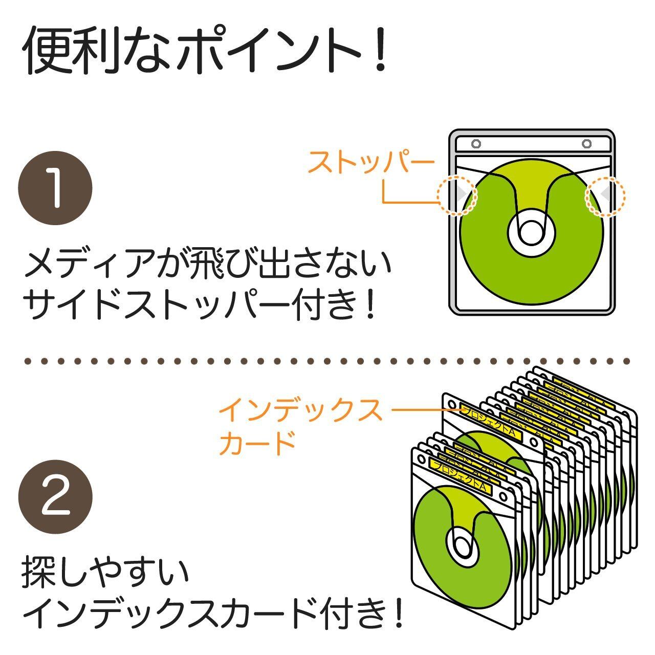検索に便利なインデックスカードがついています。DVD・CDの落下&飛び出し防止用にディスクストッパーが付いています。