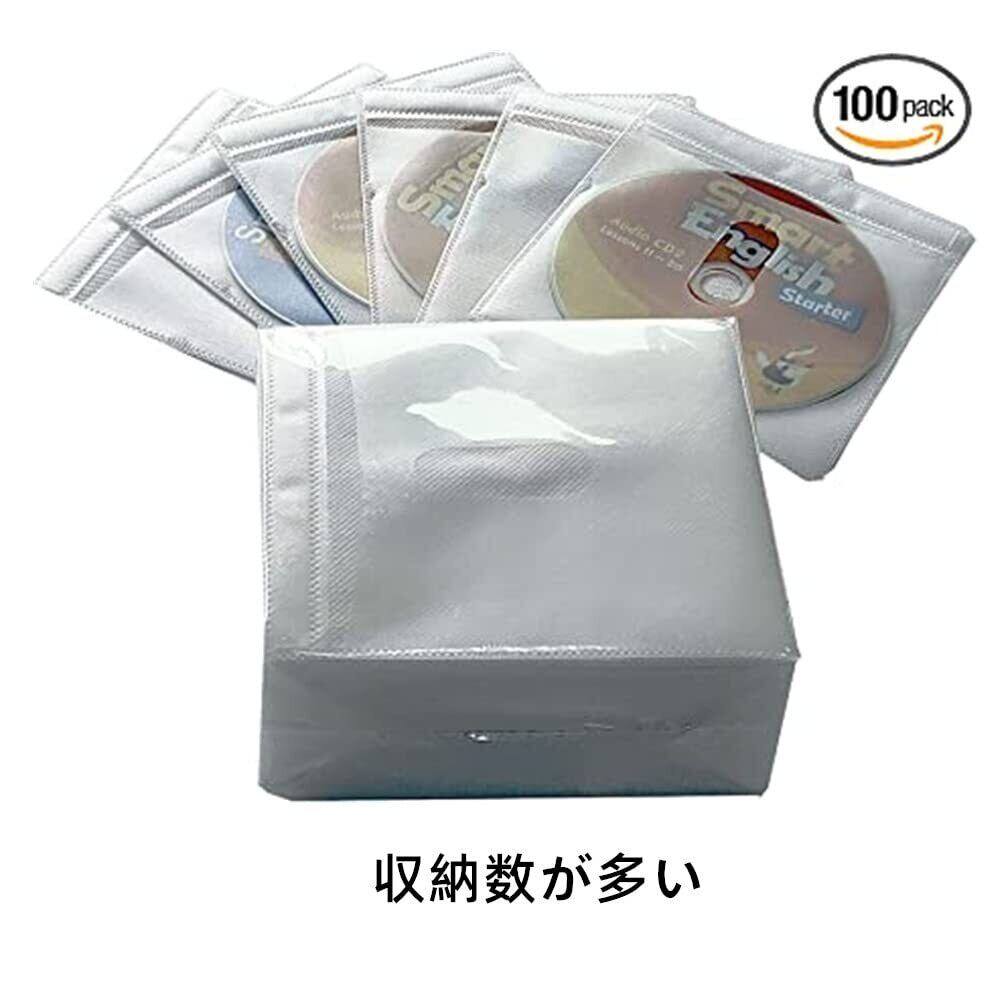 JEYODA DVD CDケース 不織布 両面収納 100枚入 200枚収納可 落下防止ホワイト